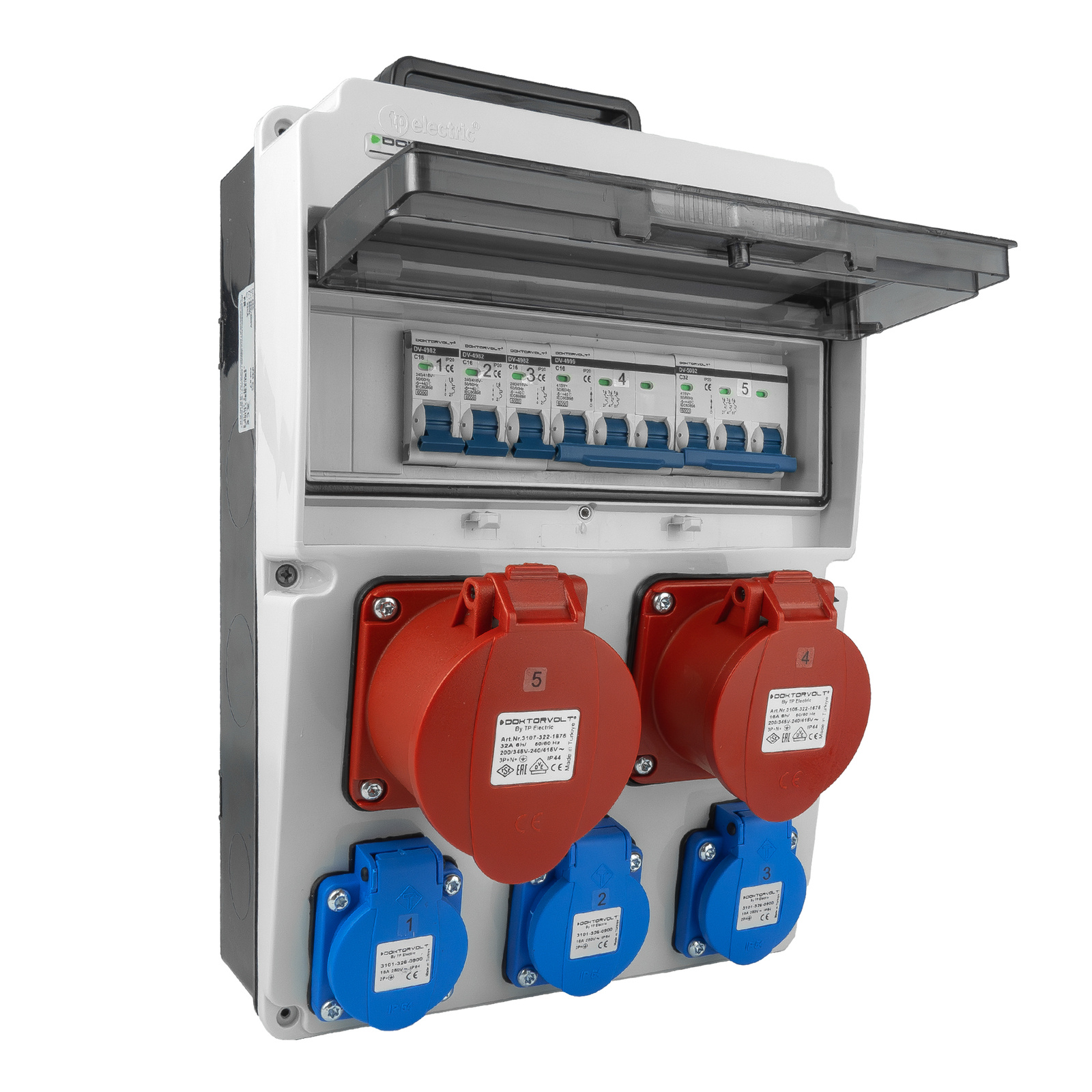 Baustromverteiler 16A 32A CEE 3x230V Stromverteiler mit Griff LS-Schalter Doktorvolt DV-8119-F