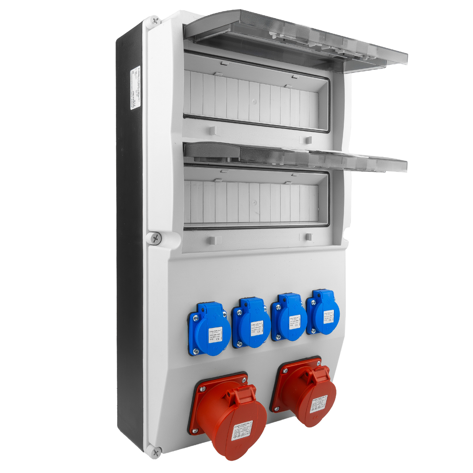 Baustromverteiler 16A 32A CEE 4x230V typ E Stromverteiler mit 26 Module Revisionsfenster Doktorvolt DV-5312-F