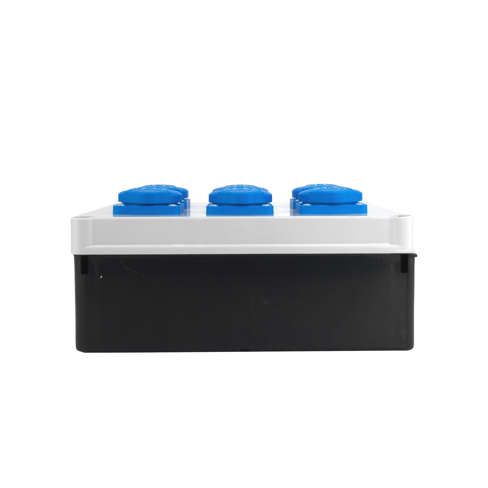 Hermetischer Baustromverteiler DOKTORVOLT WDD 16A IP54 mit 6x230V Steckdosen. UV-beständiges Gehäuse. Zertifiziert nach CE, TÜV, IEC 61439. Ideal für Baustelle, Industrie und Außenmontage geeignet