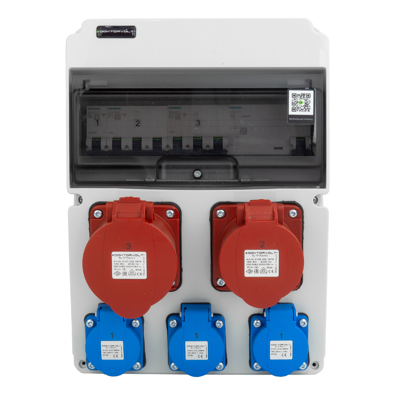 Baustromverteiler CEE 32A 16A JUN-SFI 3x230V Stromverteiler Wandverteiler Doktorvolt