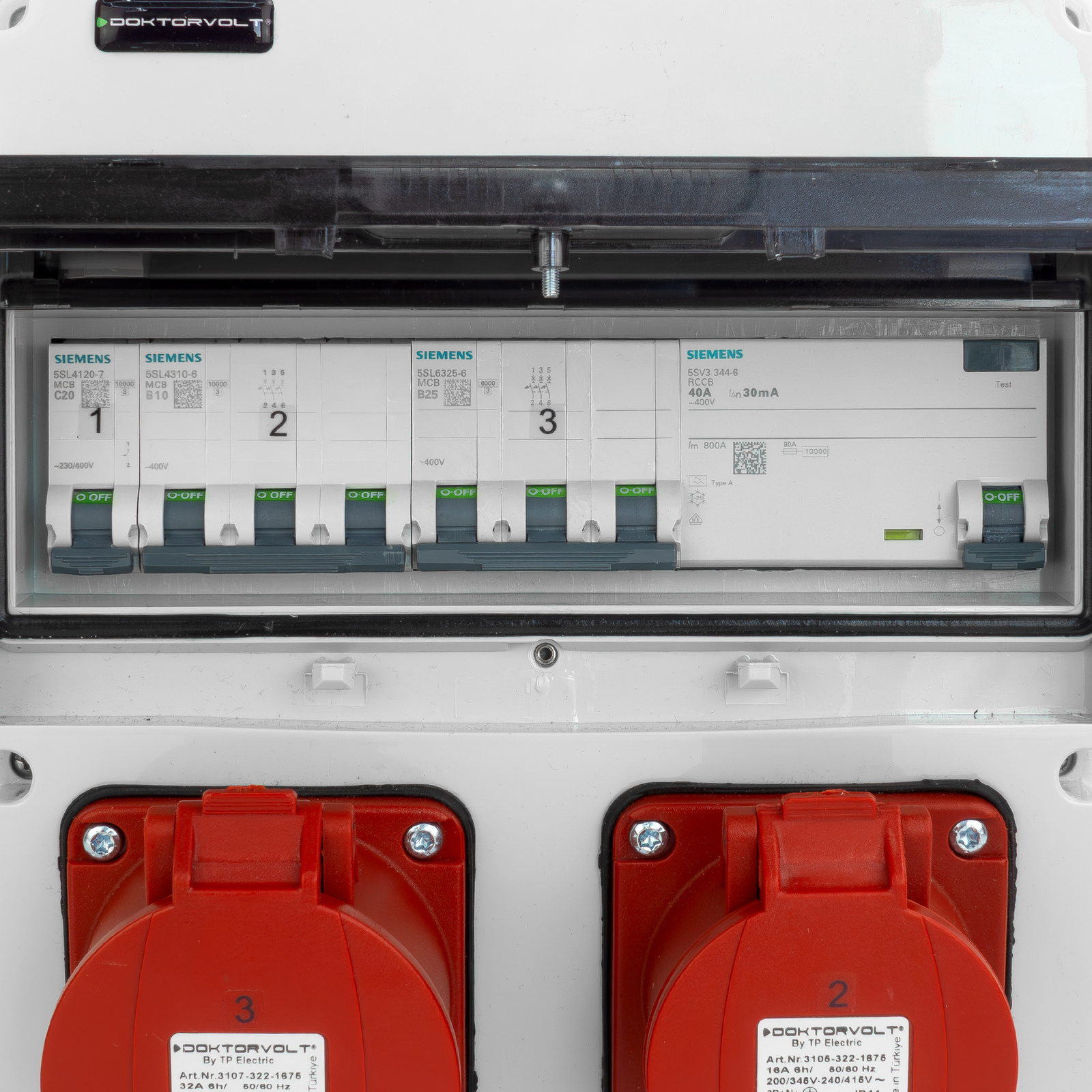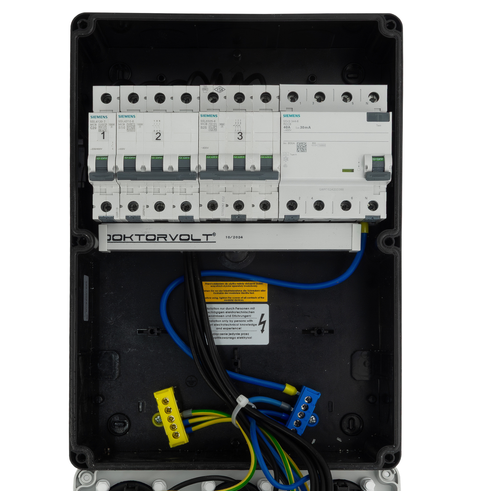 • 1 x Fehlerstromschutzschalter: 40A 30mA Typ A 3P+N 10kA