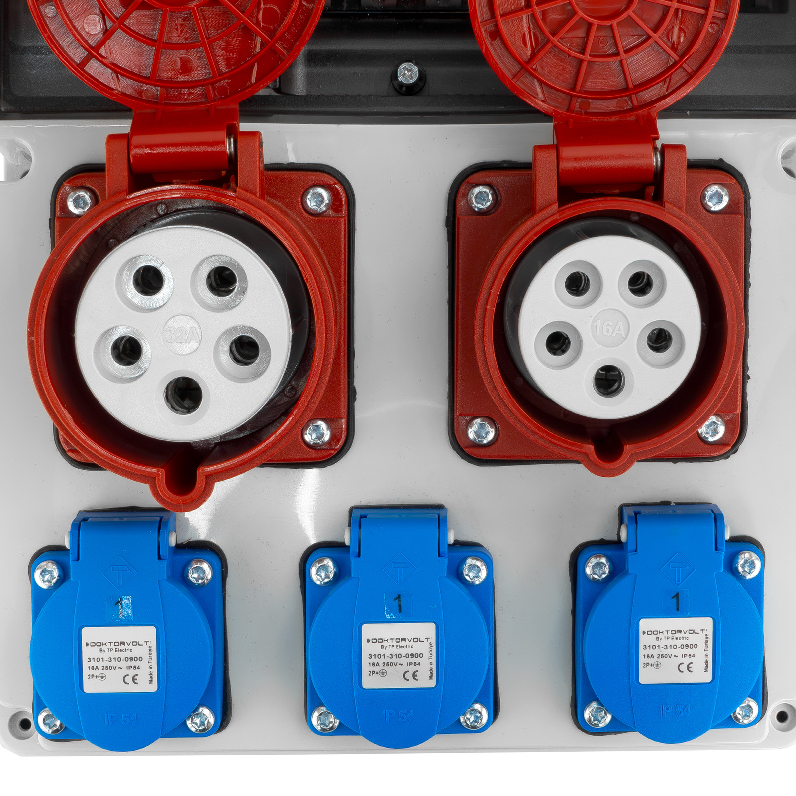 Baustromverteiler 32A 16A CEE 3x230V JUN-S/FI Stromverteiler Wandverteiler Doktorvolt DV-5558-D