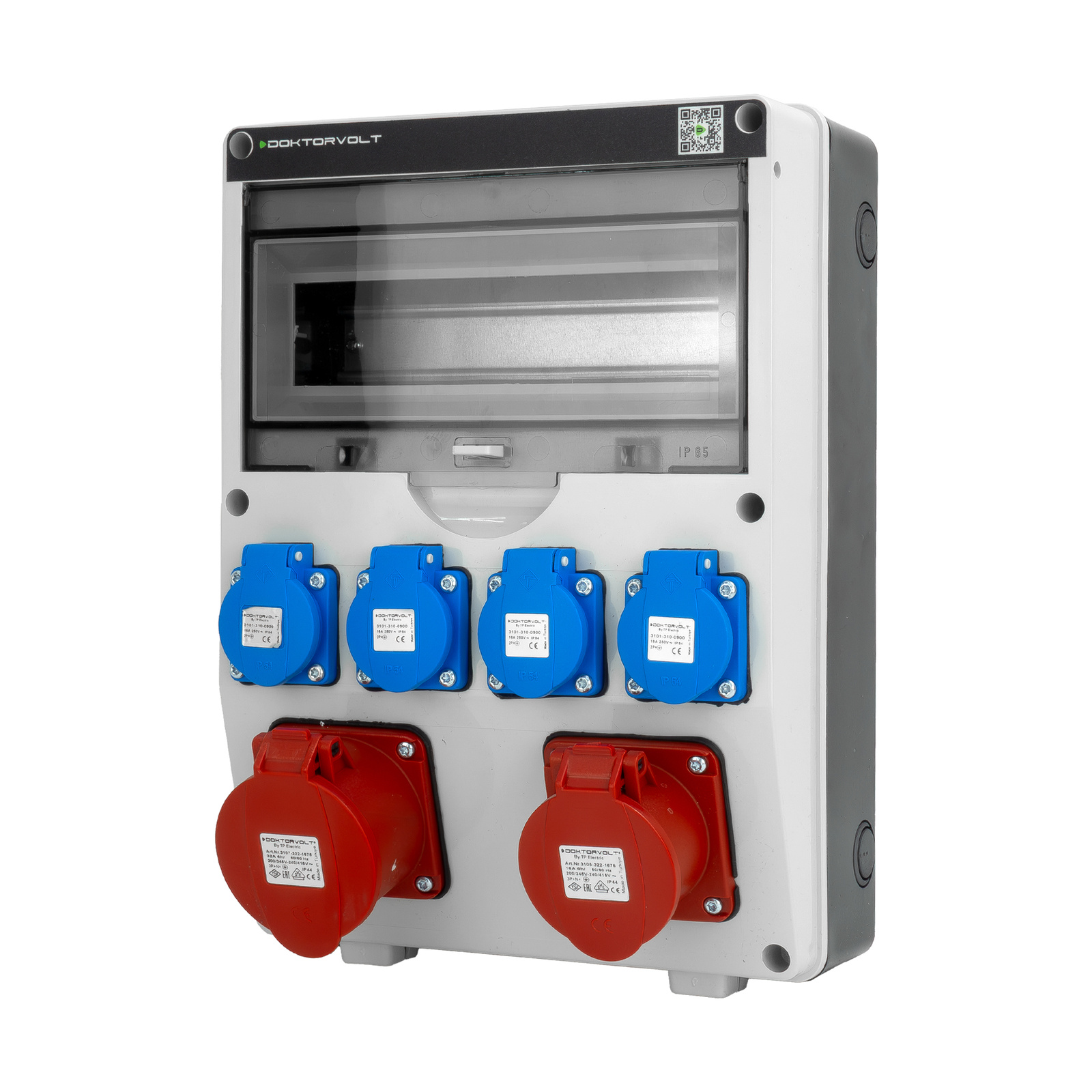 Baustromverteiler 32A/16A CEE 4x230V Stromverteiler TGD Wandverteiler ohne Sicherungen Doktorvolt DV-6029-D