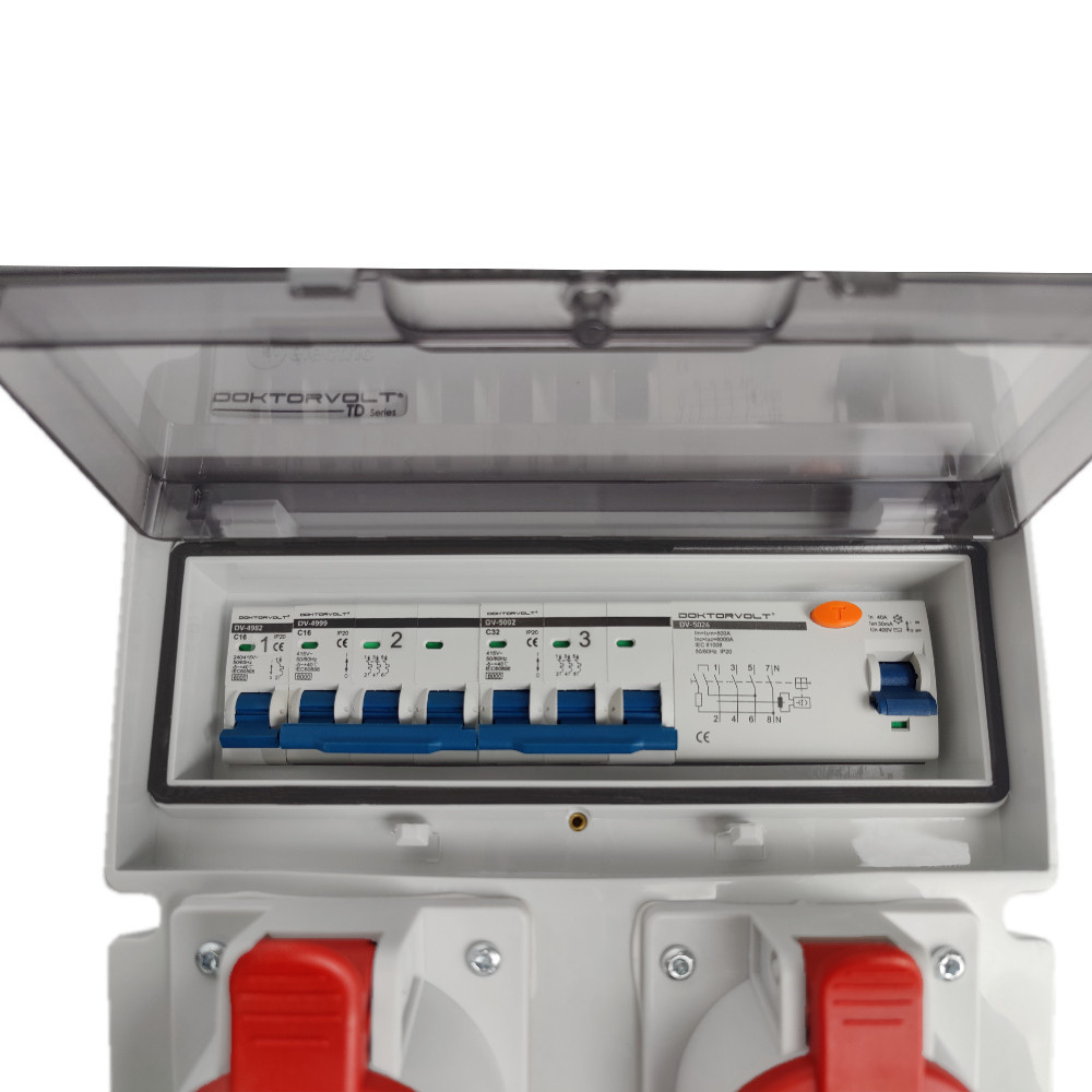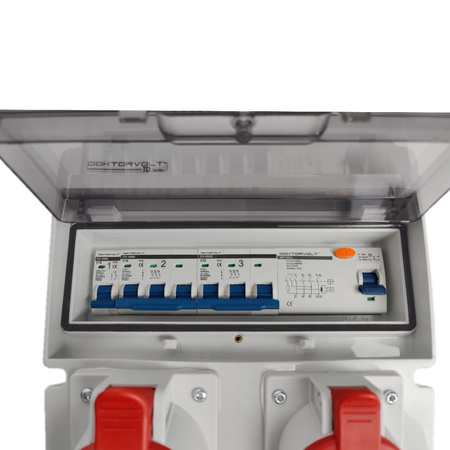 Baustromverteiler 32A 16A gesicherter Stromverteiler 3x230V IP54 DOKTORVOLT JUN-S/FI DV-0294-F