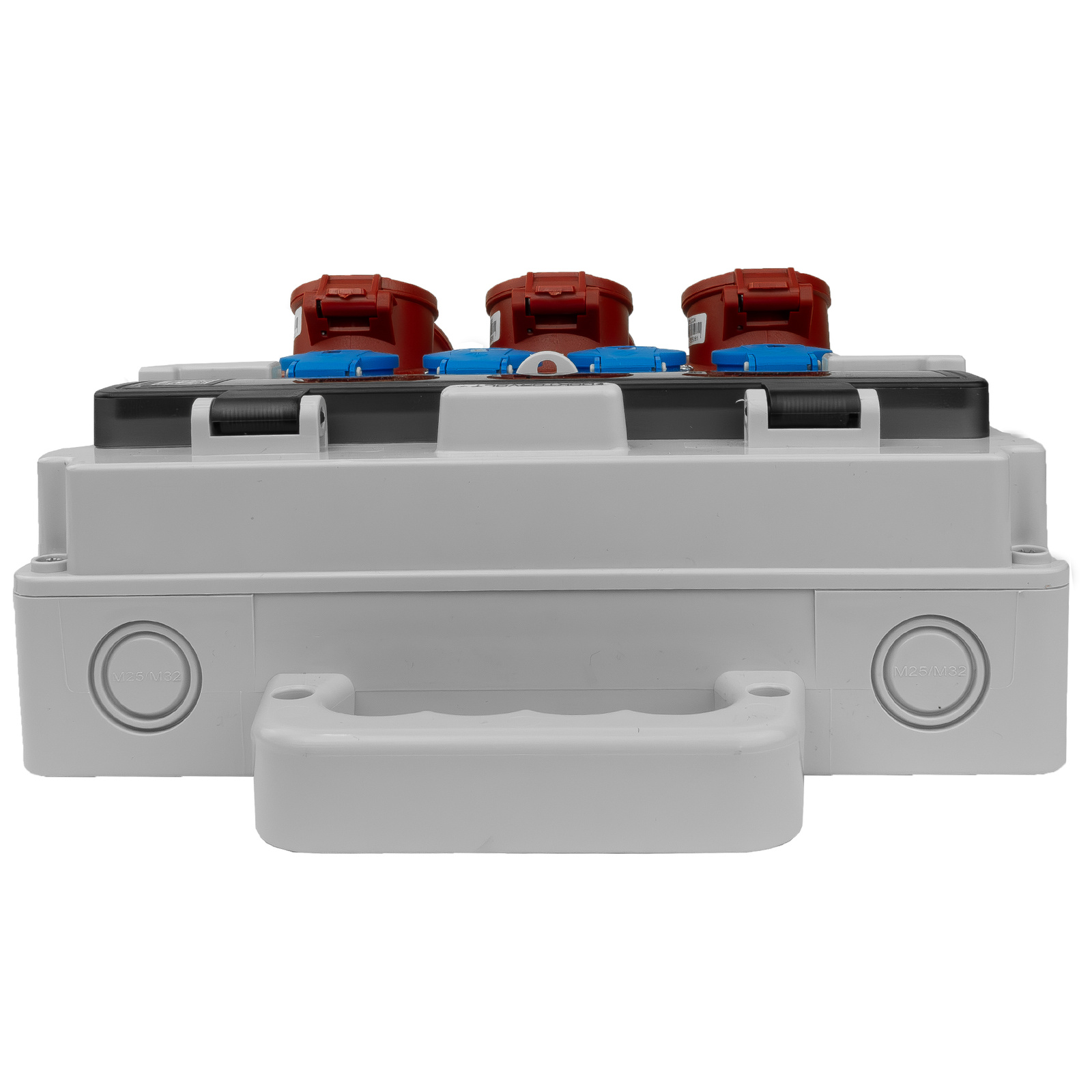 Baustromverteiler 3x16A 2x32A CEE 4x230V Stromverteiler mit Handgriff und Anbaustecker Doktorvolt TR-S/FI DV-5053-D