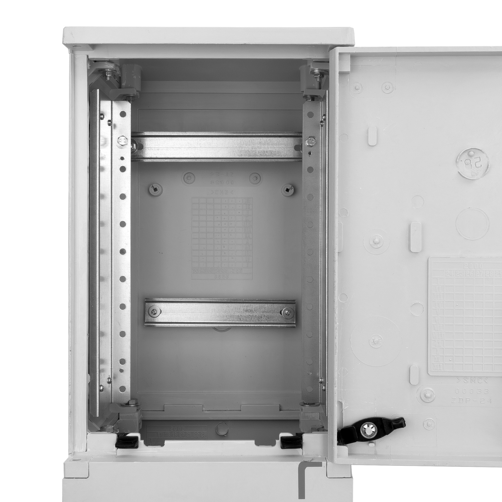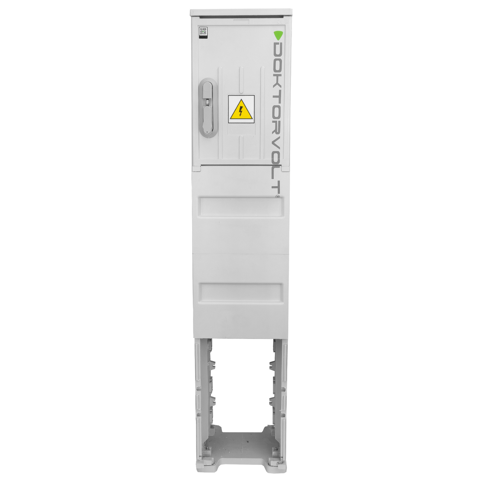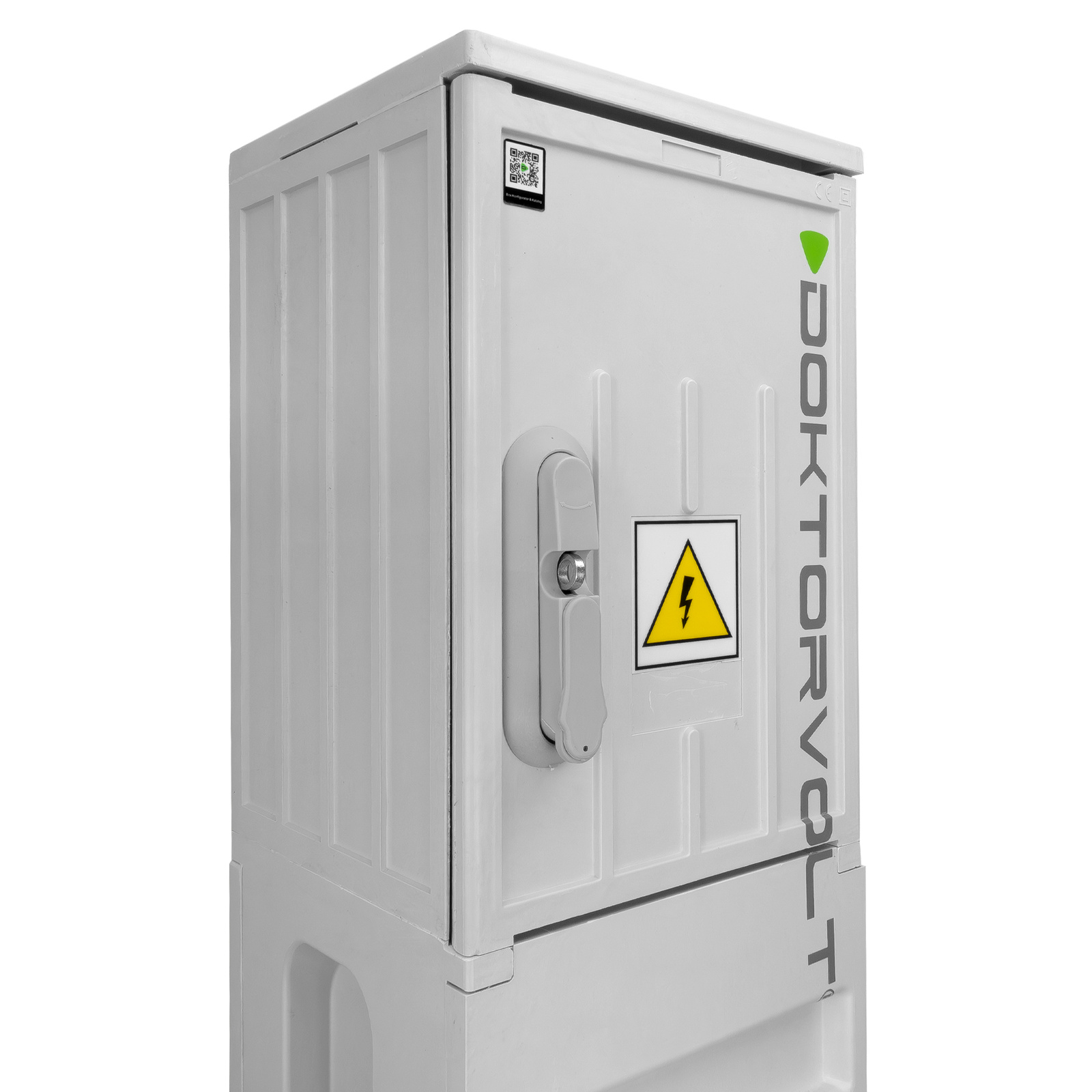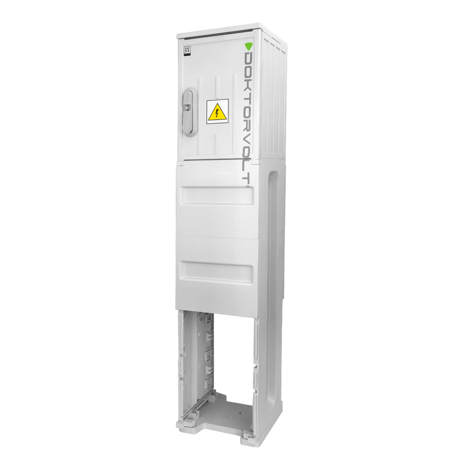 Das Fundamentgehäuse besteht aus duroplastischem, glasfaserverstärktem SMC-Polyester. Robuste, stationäre Konstruktion, UV-beständig und für den Erdeinbau geeignet. Sorgt für eine sichere und stabile Montage des Verteilers.