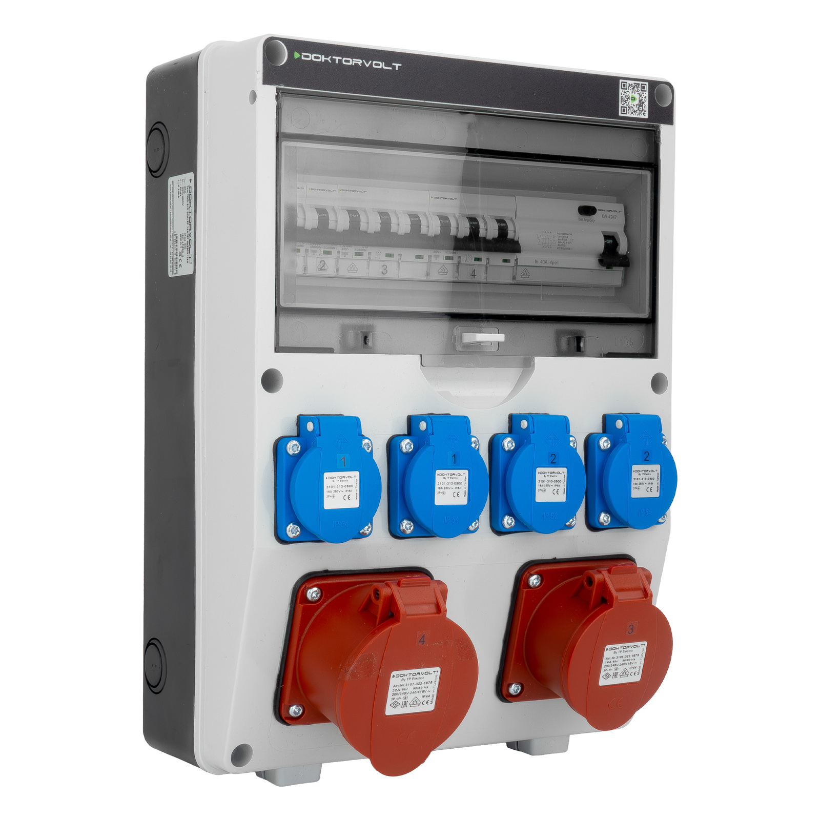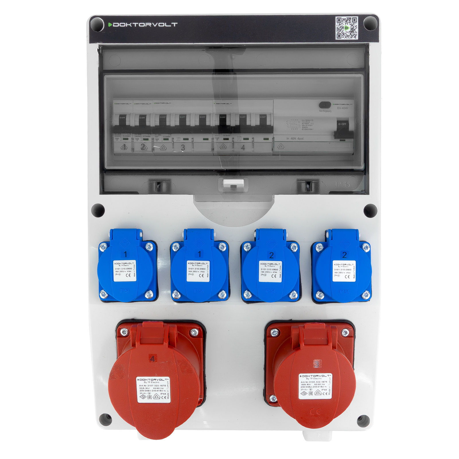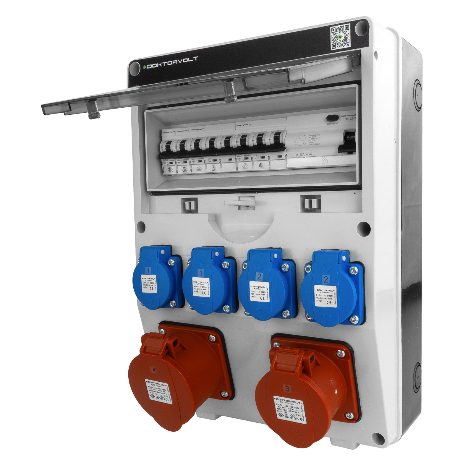 Baustromverteiler CEE 32A 16A TGD-S/FI 4x230V Stromverteiler Wandverteiler Doktorvolt DV-5541-D