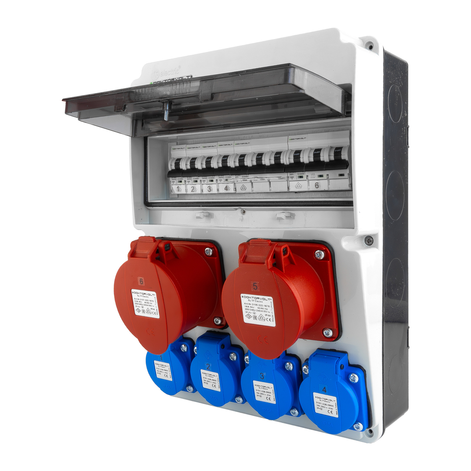 Baustromverteiler JUN 32A/16A/4x230V mit Schutz IP54 DOKTORVOLT® DV-6856-F