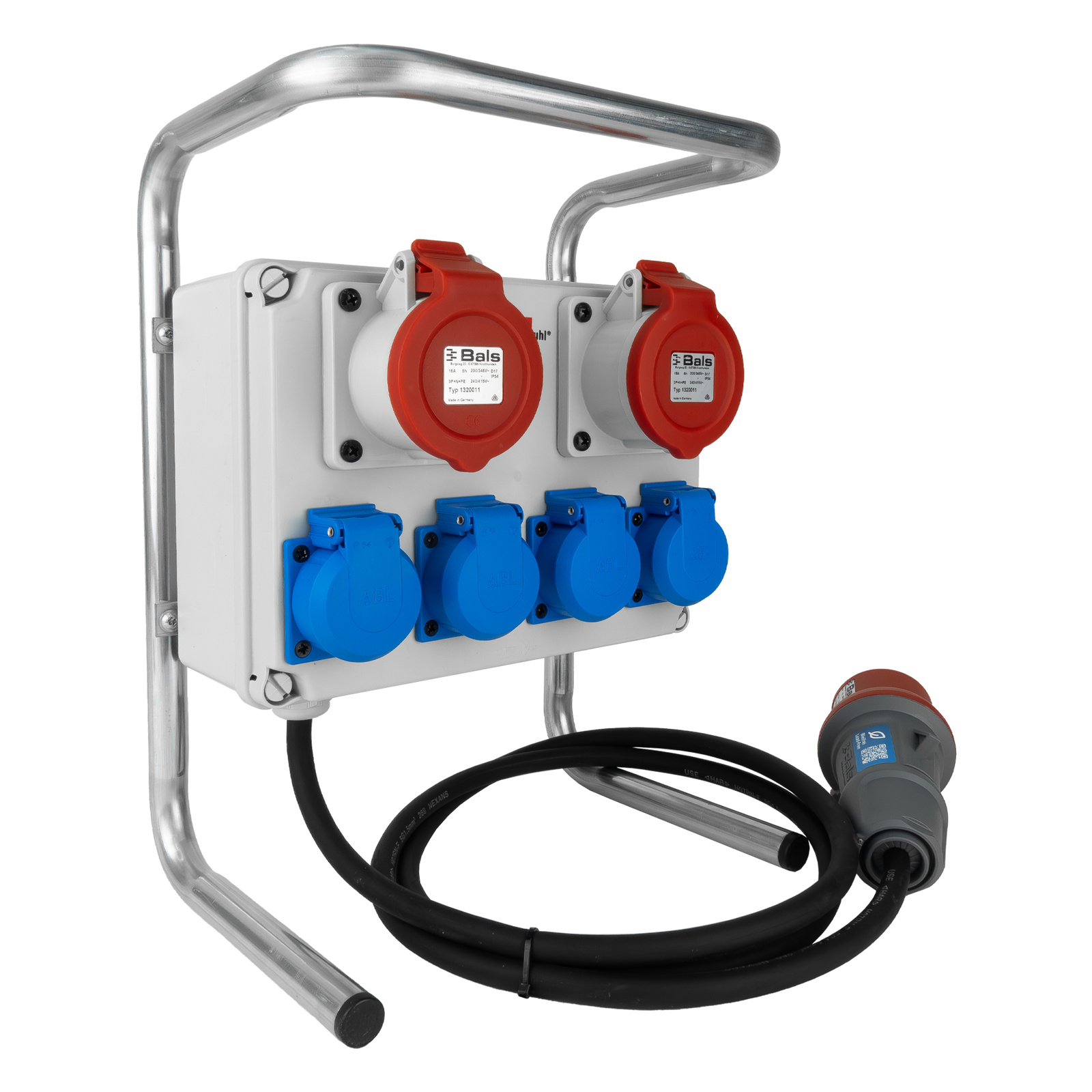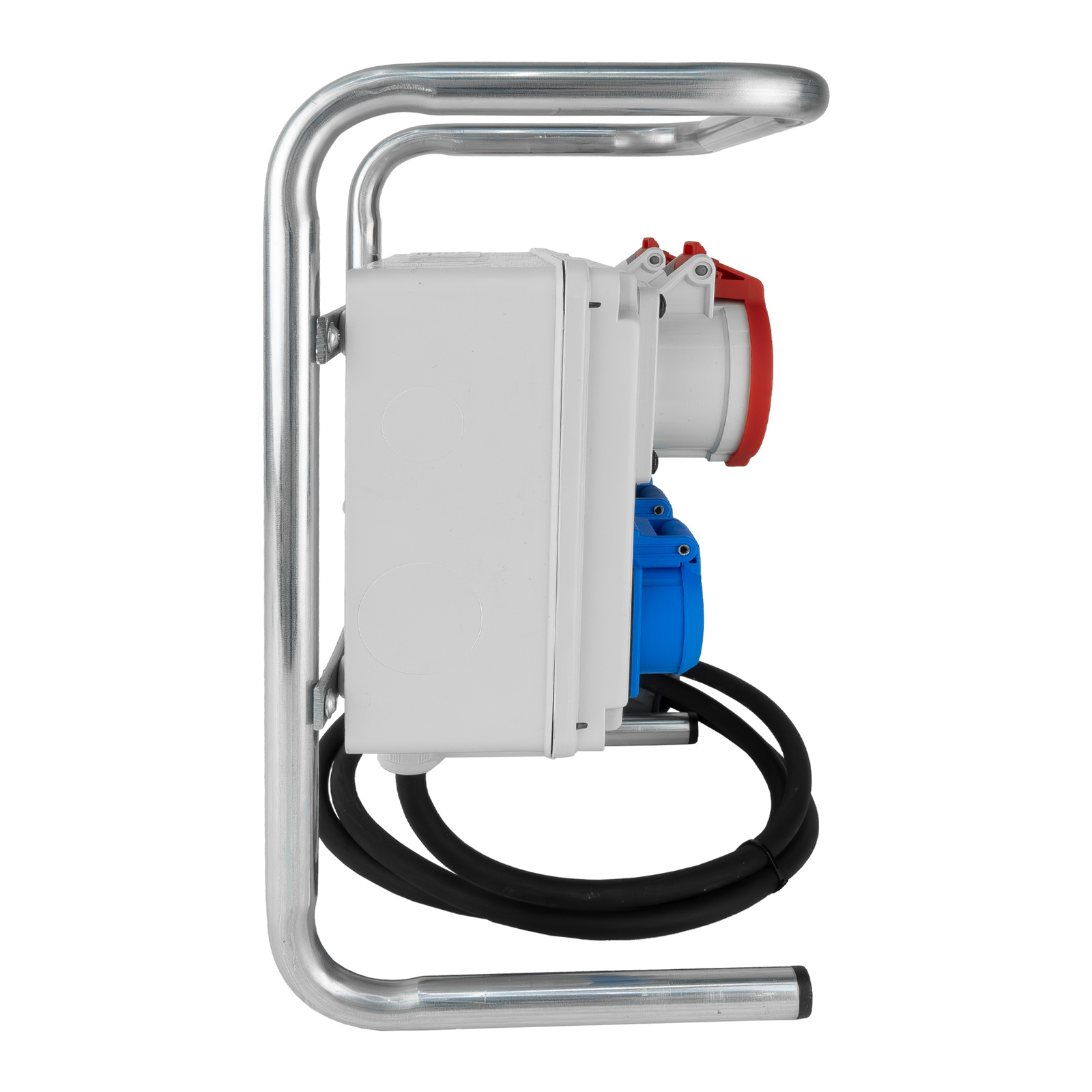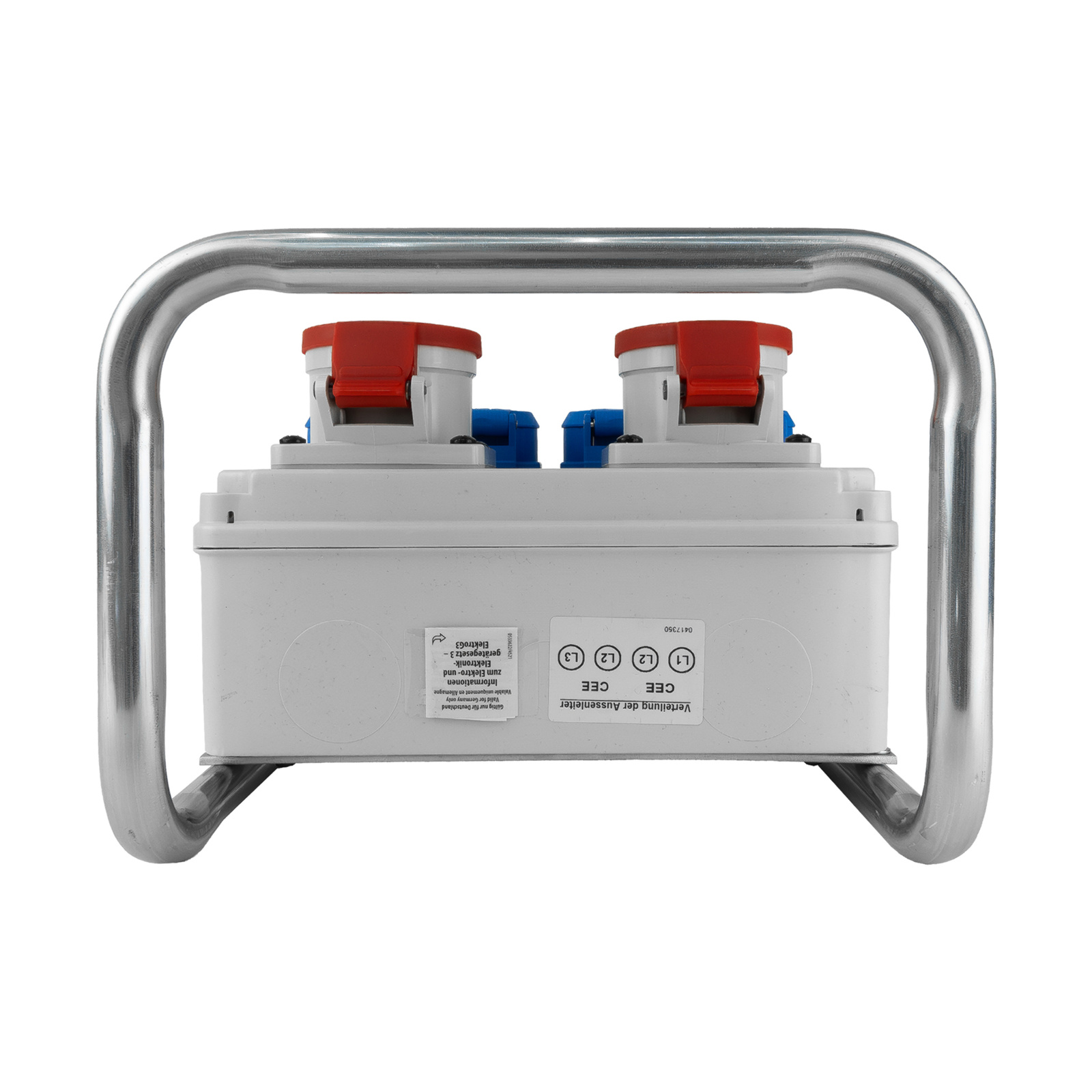 Der Stromverteiler ist bis zu 11000 W belastbar und bietet 6 Steckdosen, darunter 2 CEE 16A und 4 Schutzkontaktsteckdosen, sodass verschiedene Geräte angeschlossen werden können. Eine Lösung für das Problem der begrenzten Anzahl von Steckdosen an einem Ort – ideal für industrielle und bauliche Anwendungen.
