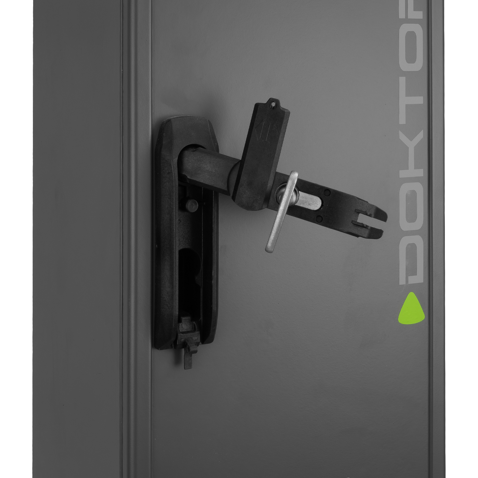 Der Campingverteiler verfügt über Vorrichtungen, an denen sich Steckdosen, Sicherheitsvorrichtungen oder Wasseranschlüsse problemlos montieren lassen. Er kann durch Einschrauben in den Boden montiert werden. Das Gehäuse schützt die Geräte wirksam vor schädlichen Einflüssen. Ein weiterer Vorteil ist die Tür mit Schlüssel, die den Zugang für Unbefugte einschränkt.