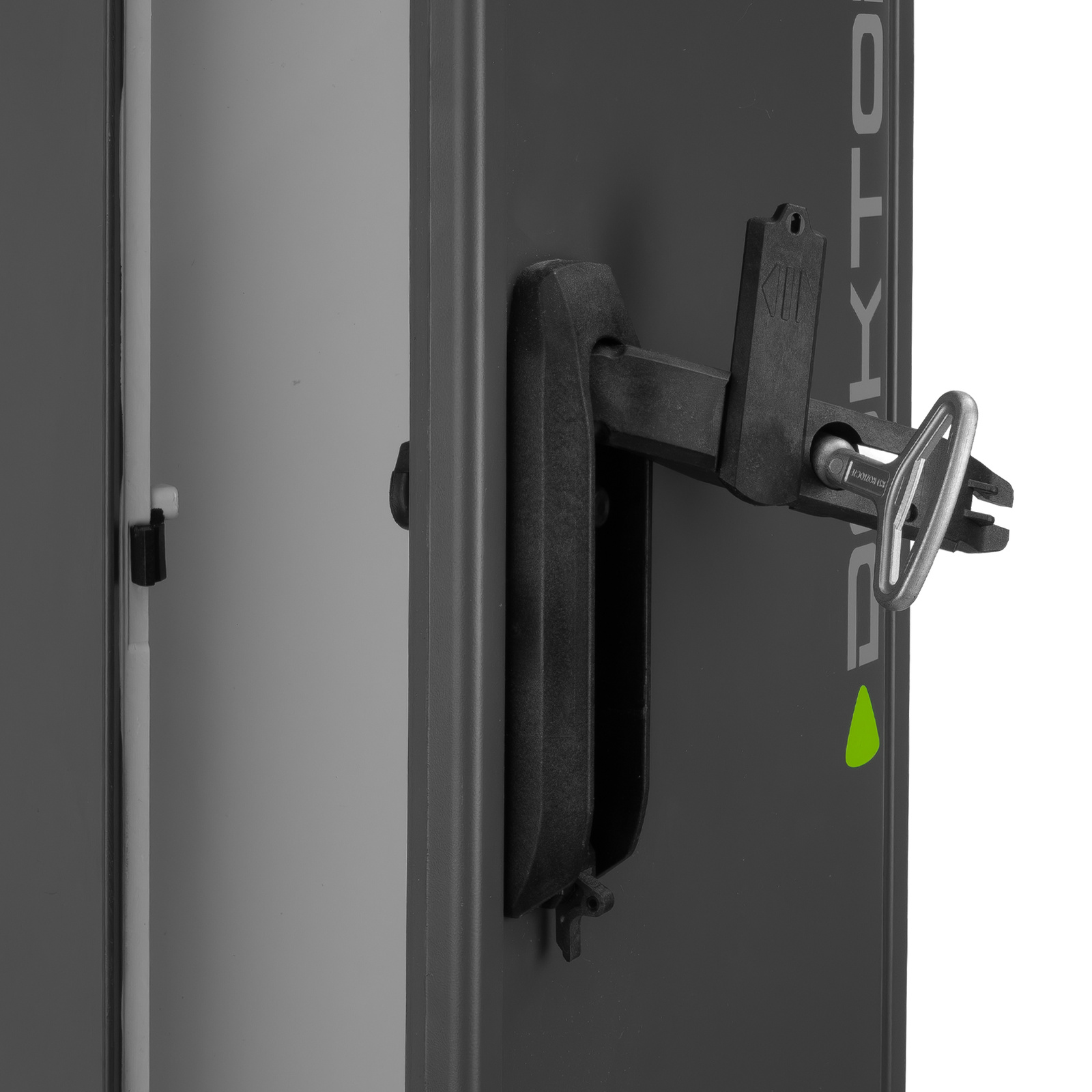 Leergehäuse auf Fundament für Besitzer von Camping- und Zeltplätzen sowie anderen touristischen Einrichtungen. Das anthrazitfarbene Gehäuse in der Farbe RAL 7015 ist aus Materialien höchster Qualität gefertigt, die eine lange Lebensdauer gewährleisten. Diese Version ist für die Montage durch Verschrauben mit dem Untergrund geeignet.