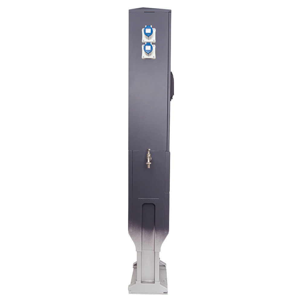• Der oft als Campingsäule bezeichnete Camping Stromverteiler ist für die Verteilung von Strom und Wasser auf Campingplätzen, Parkplätzen oder in Jachthäfen bestimmt. Die Stromsäule ist resistent gegen Umwelteinflüsse.