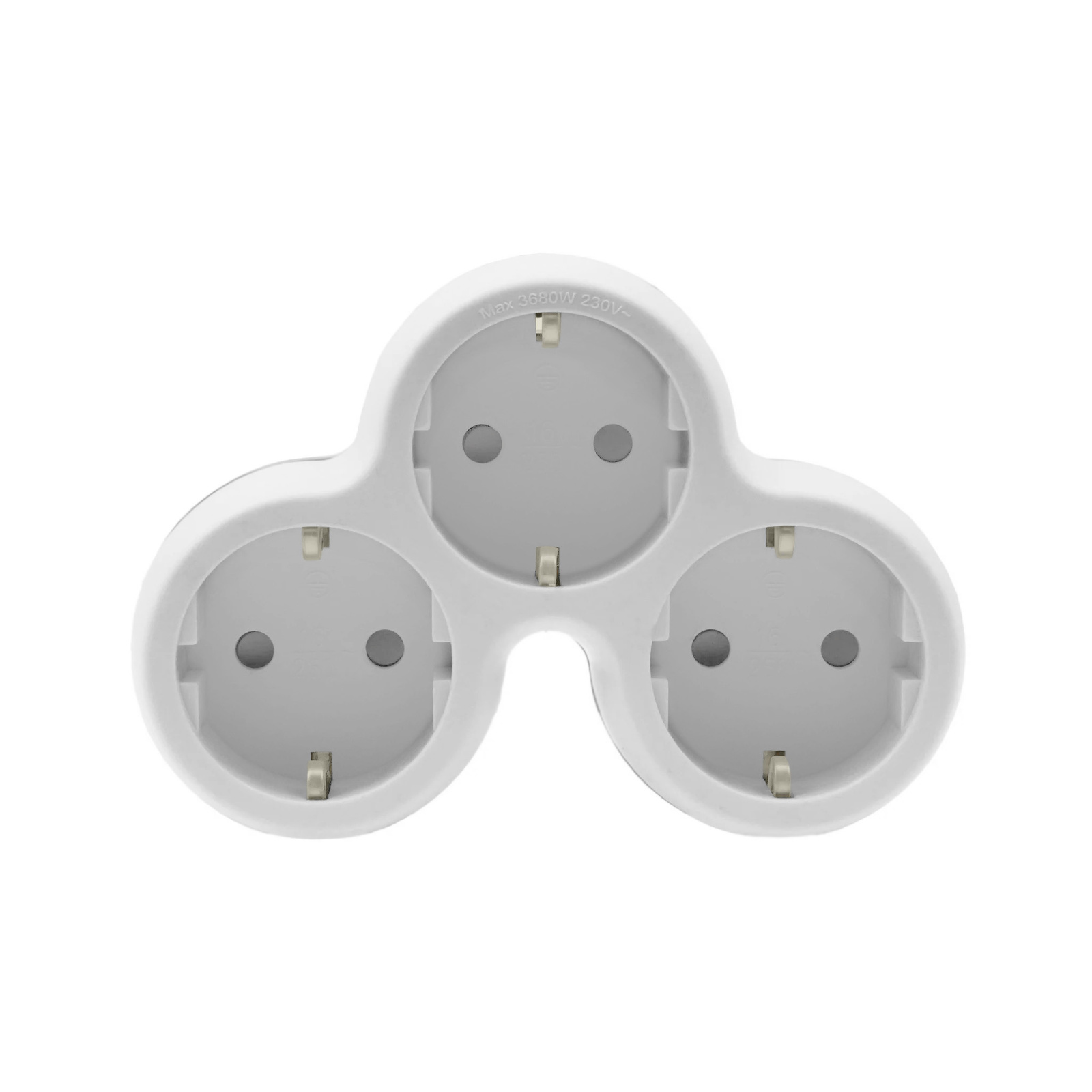 • Kompakter Adapter mit drei 230V SCHUKO-Steckdosen, ideal für den Innenbereich. Mit Erdung und Kindersicherung für sicheres und effizientes Anschließen mehrerer Geräte.