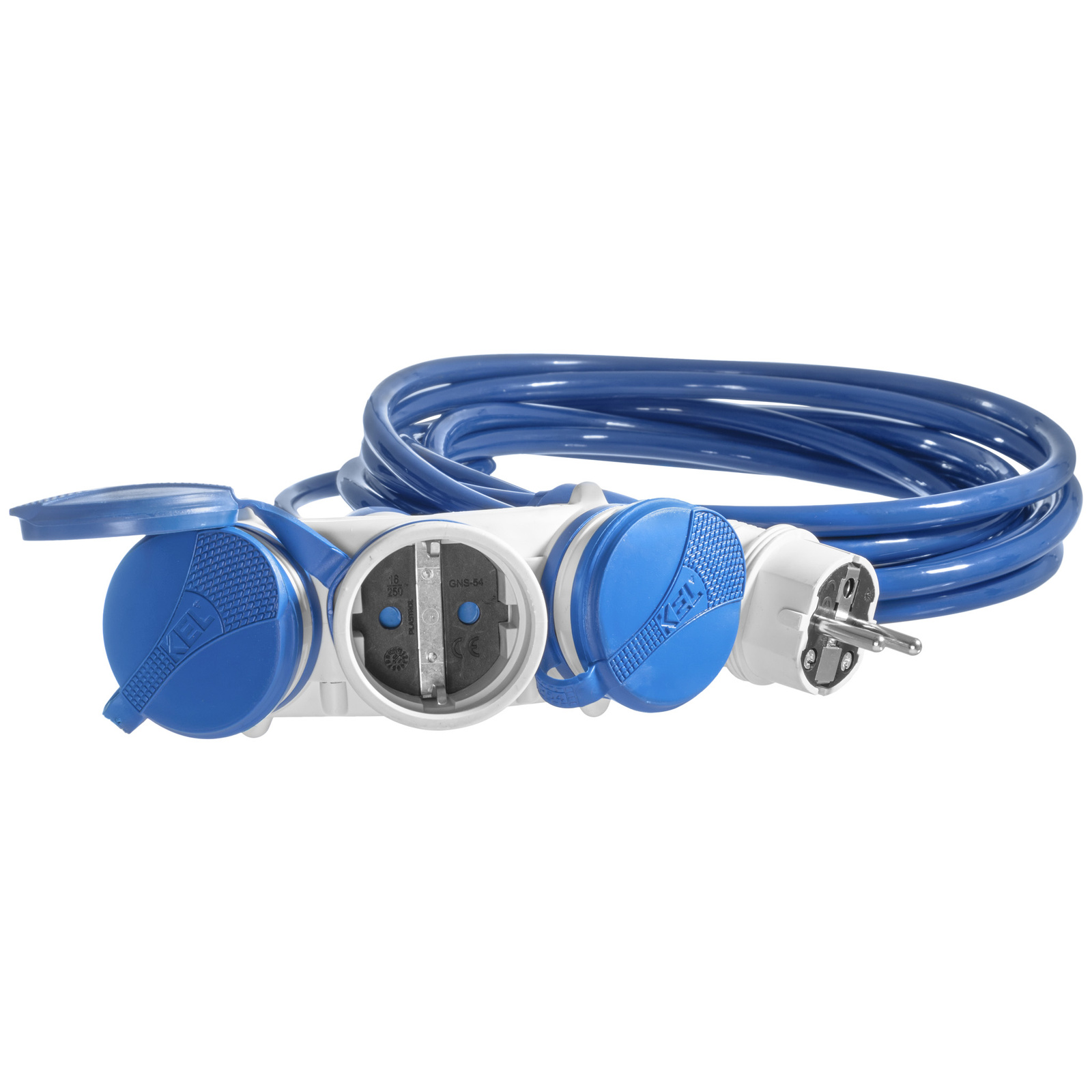 - Robustes Verlängerungskabel mit drei Schuko-Steckdosen 2P+Z 16A 250V, ausgestattet mit einem 5m Polyuretheankabel H07BQ-F 3×2,5 mm². Ideal für den Einsatz auf Baustellen und unter anspruchsvollen Außenbedingungen dank Schutzart IP44.