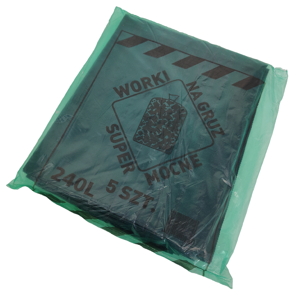 Strapazierfähige, starke Säcke für Schutt und Bauschutt von Wojafko. Erhältlich in einer Reihe von Größen von 60 l bis 240 l, verpackt zu 5 Stück pro Packung.