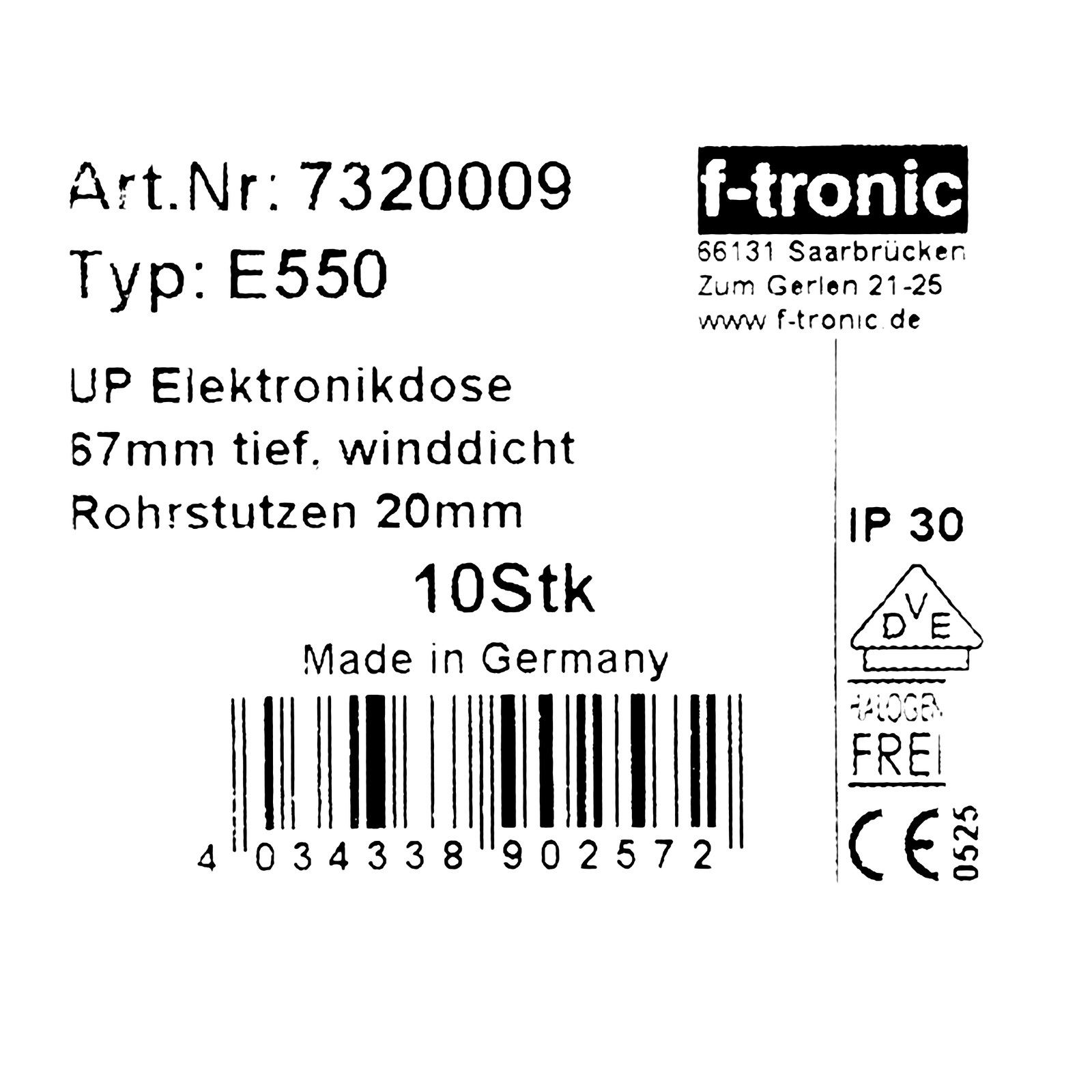 F-tronic Unterputzdose Elektronikdose 10 Stück Schalterdose mit Membran für IT Gerätedose luftdicht schwarz VDE 732 E550
