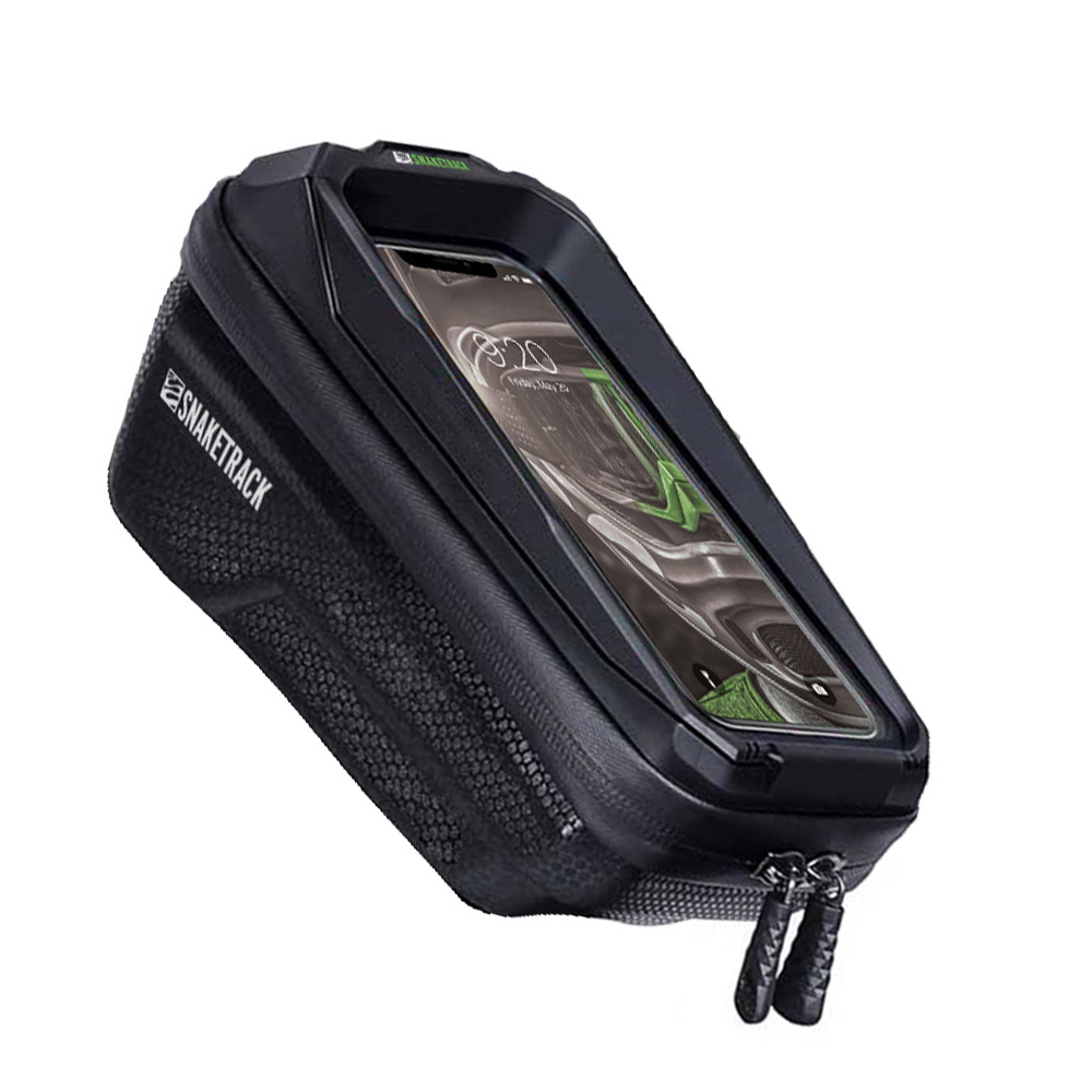 - Wasserdichte Rahmentasche Snake Track ST03 mit Touchscreen-Handyfach. 1,2L Stauraum für Smartphone, Schlüssel, Geldbörse und Werkzeug. Robustes EVA/PU/TPU-Material, einfache Rahmenmontage, stoß- und regenfest – ideal für Stadt- und Trekkingtouren.