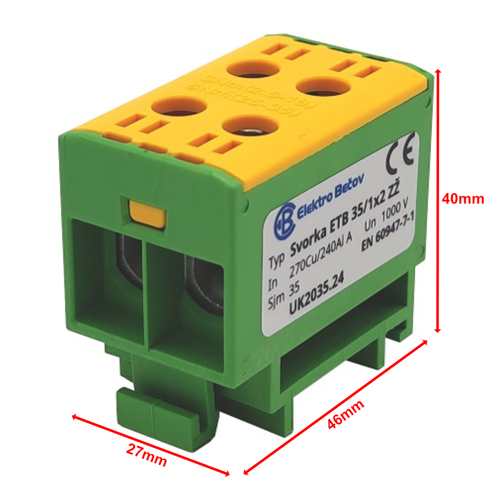 Hauptleitungsklemme Anschlussklemme ETB 35/1x2 Al/Cu Universalklemme elektroinstallation 4 Löcher Elektro Becov UK2035.24