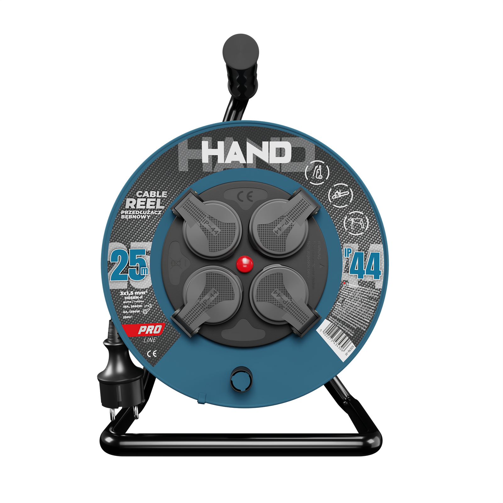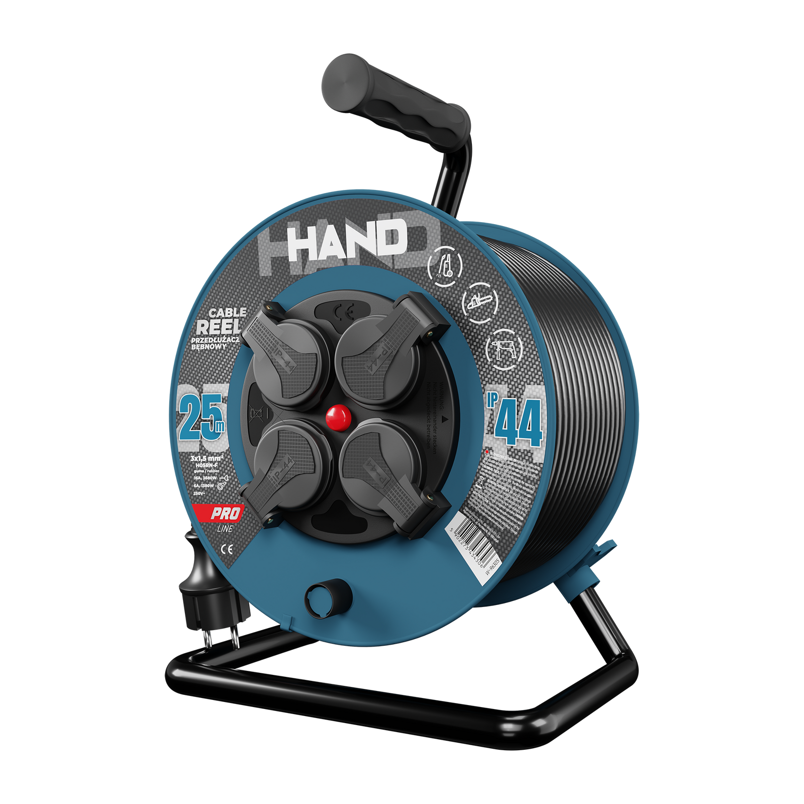 Kabeltrommel HAND PRO 25m 4x Steckdosen 230V IP44 H05RN-F 3x1,5 mm² W-96305
