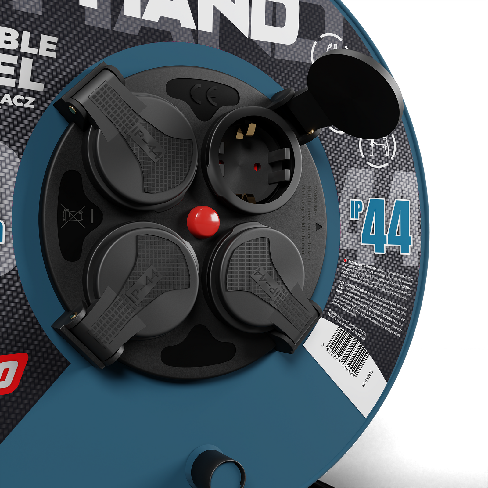 • Robuste Kabeltrommel mit 30m Gummikabel und 4 Schuko Steckdosen – ideal für Innen- und Außeneinsatz. Spritzwassergeschützt (IP44), mit Erdung und Überhitzungsschutz für sicheres Arbeiten auch unter hoher Last.