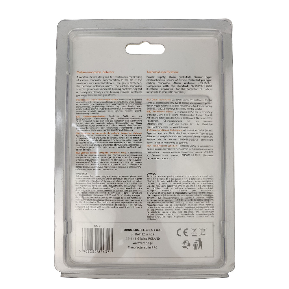 VIRONE Kohlenmonoxidmelder mit LCD-Anzeige DC-3 ORNO