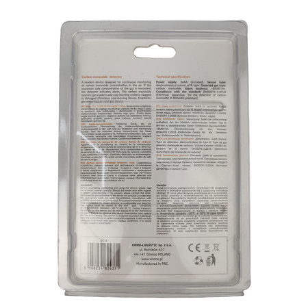 Der Hightech-Kohlenmonoxidsensor ist ein kompaktes Gerät in einem Kunststoffgehäuse mit den Abmessungen 107x77x36 mm. Er verwendet einen der fortschrittlichsten elektrochemischen Sensoren der Welt, kombiniert mit einem elektronischen Steuerkreis, der ihm eine hohe Erkennungsempfindlichkeit bei geringem Energieverbrauch ermöglicht. Die Lebensdauer des Sensors beträgt bis zu 10 Jahre.