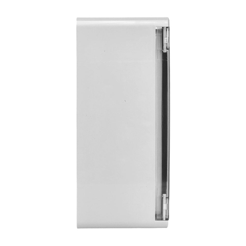 Der Schaltschrank ist aus hochwertigem ABS-Kunststoff und Polycarbonat gefertigt und passt mit seiner Farbe RAL 7035 (hellgrau) zu modernen optischen Standards. Außerdem lässt sich die Tür des Gehäuses bis zu 180° öffnen, was einen einfachen Zugang und eine komfortable Nutzung ermöglicht. Die Schutzart IK10 bedeutet Schutz gegen starke Stöße und macht das Gehäuse ideal für anspruchsvolle Umgebungen.