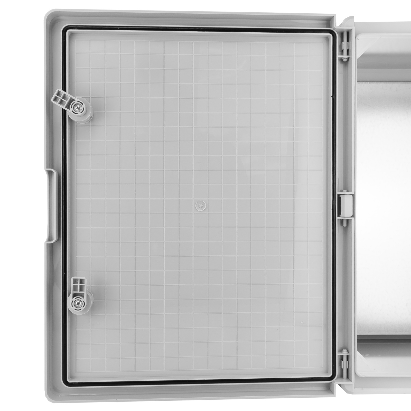 Der Schaltschrank ist aus hochwertigem ABS-Kunststoff und Polycarbonat gefertigt und passt mit seiner Farbe RAL 7035 (hellgrau) zu modernen optischen Standards. Außerdem lässt sich die Tür des Gehäuses bis zu 180° öffnen, was einen einfachen Zugang und eine komfortable Nutzung ermöglicht. Die Schutzart IK10 bedeutet Schutz gegen starke Stöße und macht das Gehäuse ideal für anspruchsvolle Umgebungen.