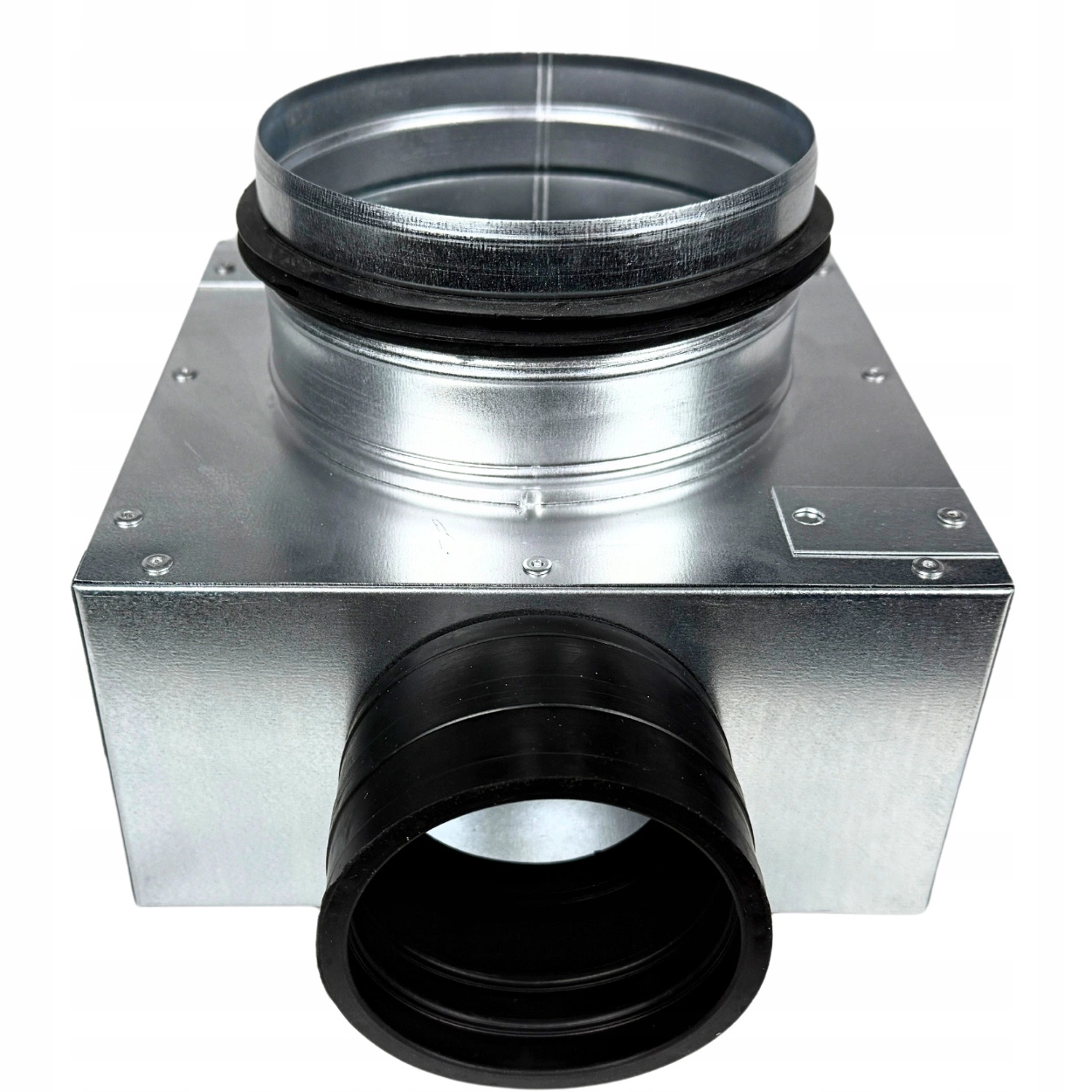 - Metallische Druckausgleichsbox mit einem Anschluss Ø75 mm und einem Hauptanschluss Ø125 mm. Kompakte Bauform, langlebige Zinkbeschichtung und selbstabdichtender Gummianschluss für dichte Verbindung. Optimiert für Zu- und Abluftsysteme.