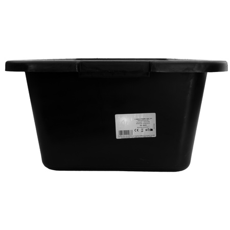 Baukübel aus schwarzem PP/PE-Regranulat. Er zeichnet sich durch hohe Widerstandsfähigkeit gegen mechanische Beschädigungen aus. Geeignet zum Mischen und Transport von Mörtel, sowohl trocken als auch nass.