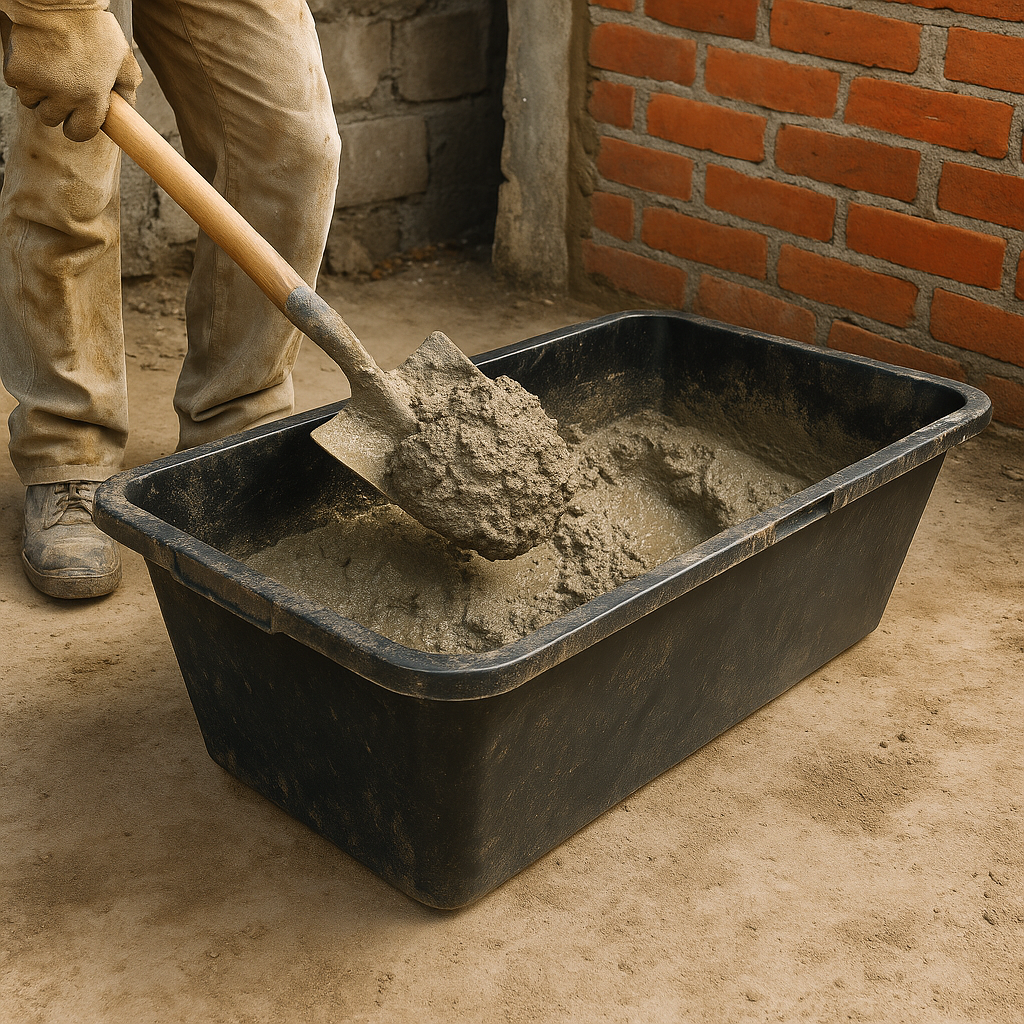 Schwarzer 80L Kübel aus recyceltem PP/PE – besonders stoß- und abriebfest. Ideal für Mörtel, Beton und Kleber. Unverzichtbare Ausstattung auf jeder Baustelle und bei Renovierungs-, Hand- und Maschinenarbeiten.