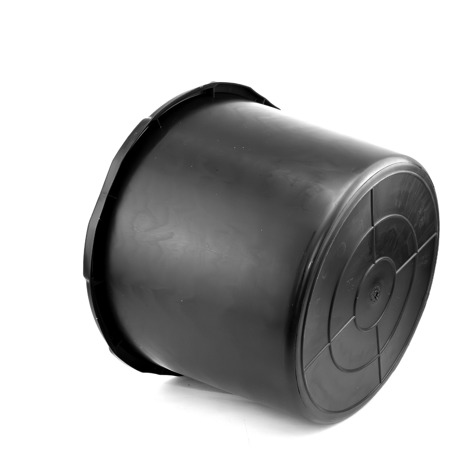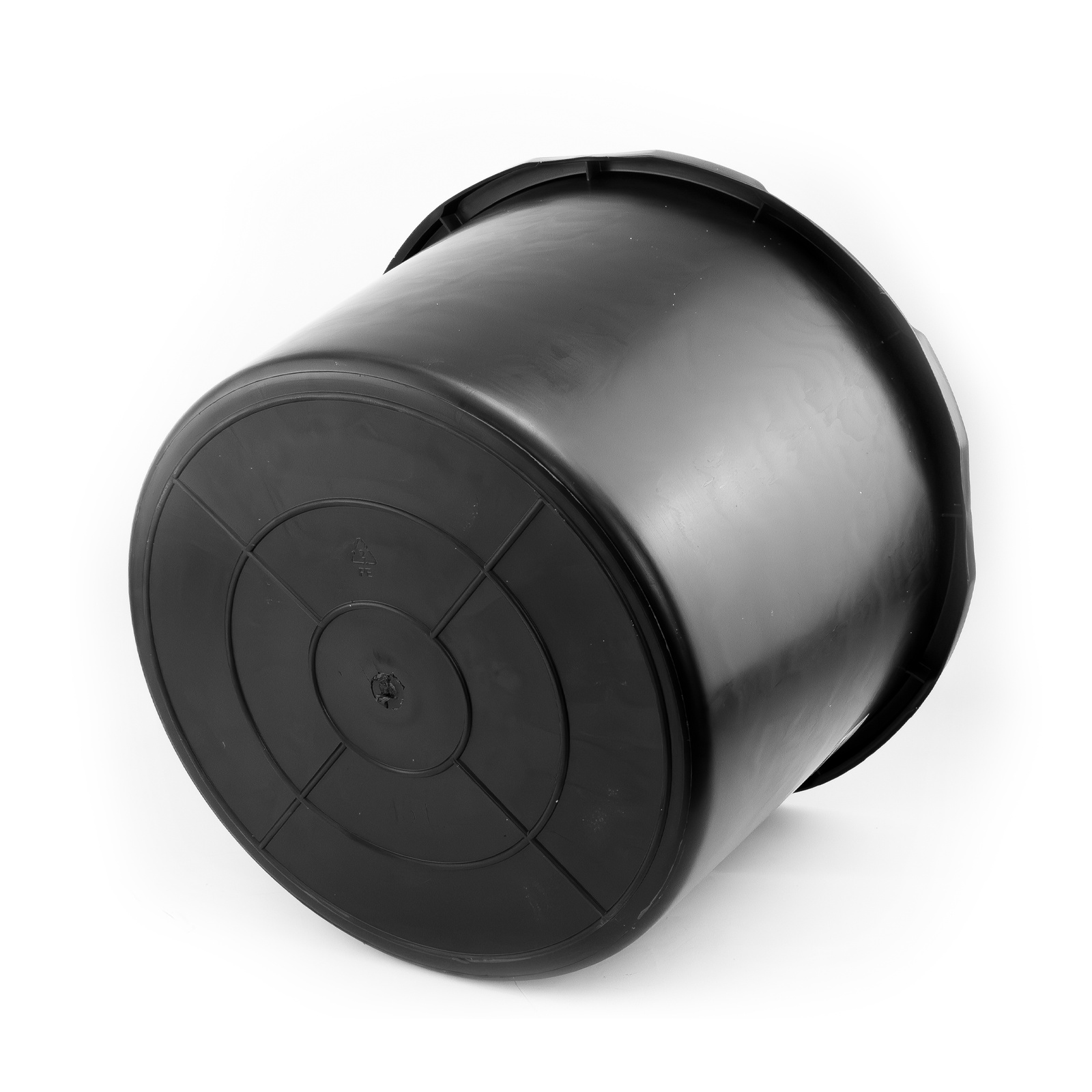 Baukübel aus schwarzem PP/PE-Regranulat. Er zeichnet sich durch hohe Widerstandsfähigkeit gegen mechanische Beschädigungen aus. Geeignet zum Mischen und Transport von Mörtel, sowohl trocken als auch nass.