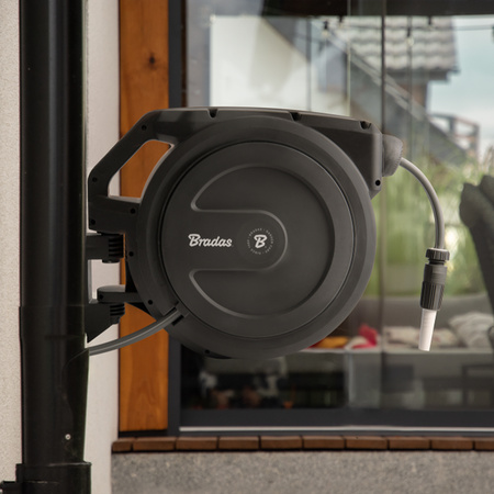 Schlauchtrommel 20m 1/2'' Schlauchbox Schlauchaufroller schwenkbar Wasserschlauchtrommel automatischer Aufroller Gartenschlauch schwarz Bradas WL-W7B20