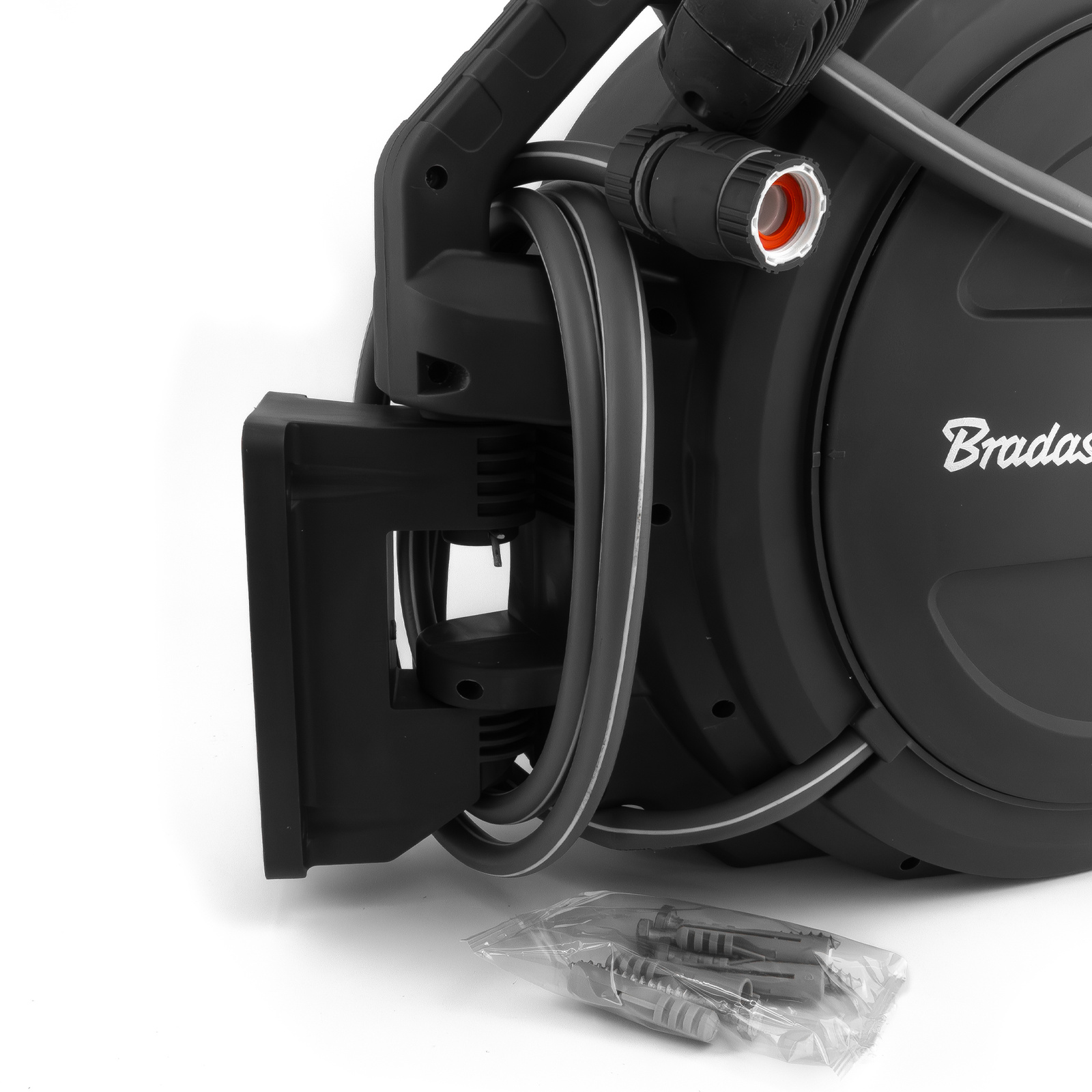 Schlauchtrommel 50m 1/2'' Schlauchbox Schlauchaufroller schwenkbar Wasserschlauchtrommel automatischer Aufroller Gartenschlauch schwarz Bradas WL-W7B50
