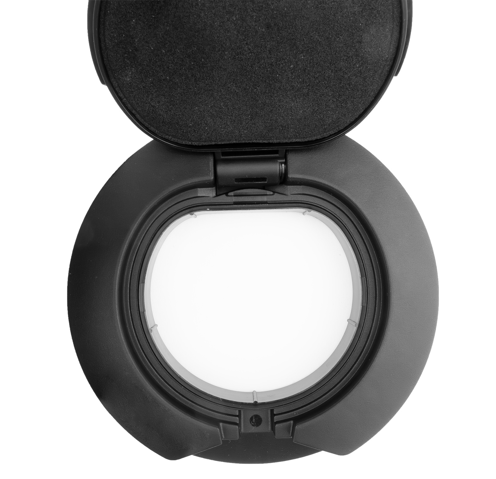 Die Schutzklappe CHARX connect modular Typ 2 ist ein rundes Zubehörteil mit selbstverriegelndem Mechanismus. Sie wird frontseitig mittels M5-Gewinde befestigt, trägt das geprägte PHOENIX CONTACT Logo und ist für Ladebuchsen gemäß IEC 62196-2 ausgelegt.