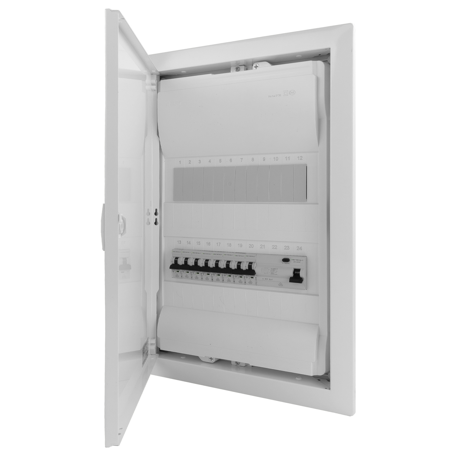 Sicherungskasten Unterputz Verteilerkasten 2-reihig 24 Module 8xMCB 1xRCCB VDE Unterverteilung verdrahtet Verteilerschrank mit Sicherungen 505,50x348x98mm Hager Hohlwand Verteiler Abzweigklemmen L1, L2, L3, N, PE Doktorvolt DV-6210-PT