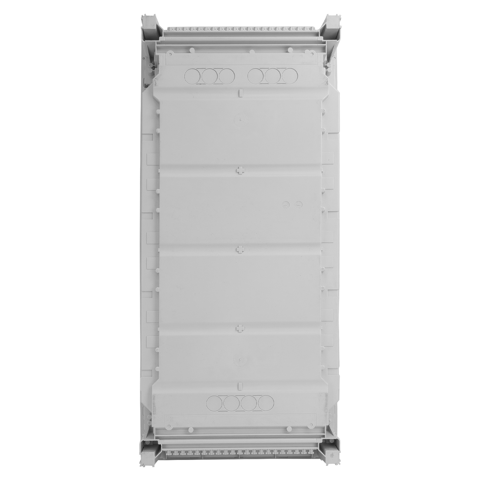 Unterputz Verteilerkasten mit den Abmessungen 755,50 x348x98mm. Er ist aus hochwertigem Kunststoff gefertigt, der eine Schutzart von IK07 gewährleistet. Er ist ideal für den Einsatz in der Garage oder Werkstatt geeignet. Der Verteilerkasten hat die Isolationsklasse II. Diese Klasse zeichnet sich durch das Fehlen einer PE-Klemme aus. Der Verteilerkasten selbst verfügt über eine Grund- und Zusatzisolierung. Dies gewährleistet Sicherheit, auch wenn eine Isolationsschicht beschädigt wird. Das Gehäuse hat die Schutzart IP30. Der Verteilerkasten ist UV-beständig. Das Gehäuse ist VDE-zertifiziert.