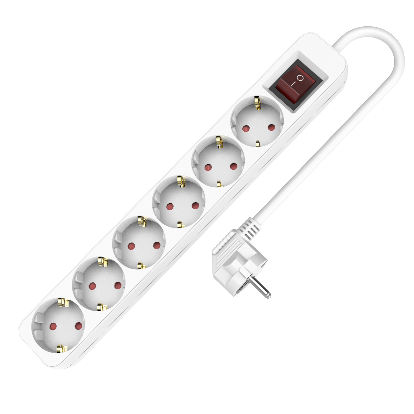 - 6-fach Steckdosenleiste mit Schuko-Steckdosen, mit Schalter und 5m Kabellänge. Mit einer Leistung von 3680W und 16A Stromstärke bietet sie eine sichere Stromversorgung für mehrere Geräte gleichzeitig. Ausgestattet mit Erdung und CE-Zertifikat.