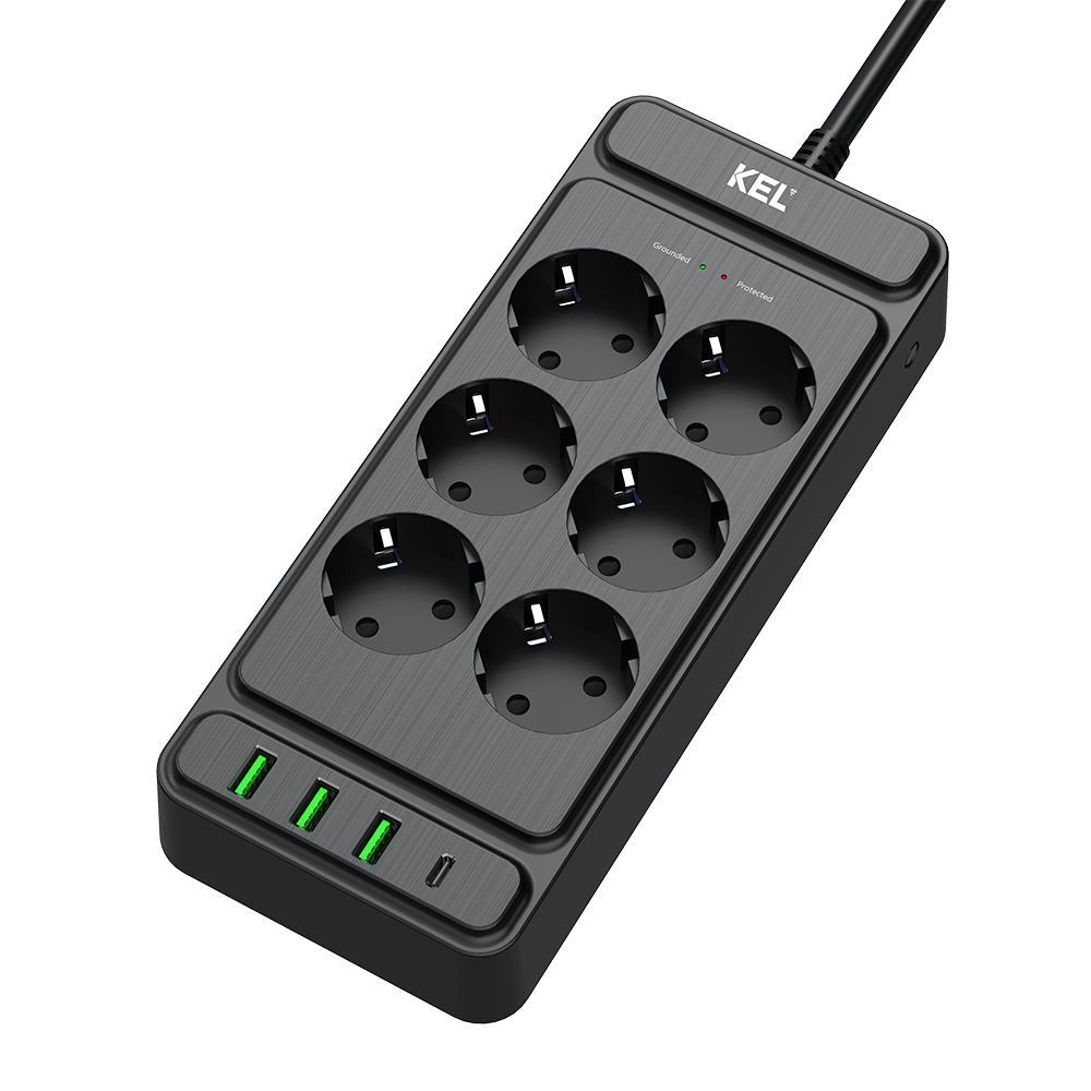 - Steckdosenleiste mit sechs Schuko-Steckdosen, vier USB-Anschlüsse (3x USB-A, 1x USB-C) für zuverlässige Stromversorgung. Der 2m lange Anschluss und modernes schwarzes Design machen sie zur idealen Wahl für Büro und Zuhause.