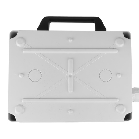 Kompakter Verteiler (16 x 23 x 24,5 cm, 1,76 kg) mit Tragegriff erleichtert den Transport und die Installation. Das Kunststoffgehäuse und die Schutzart IP44 sorgen für sicheren Einsatz im Außenbereich. Eine ideale Lösung für schnelles und bequemes Arbeiten an verschiedenen Orten.
