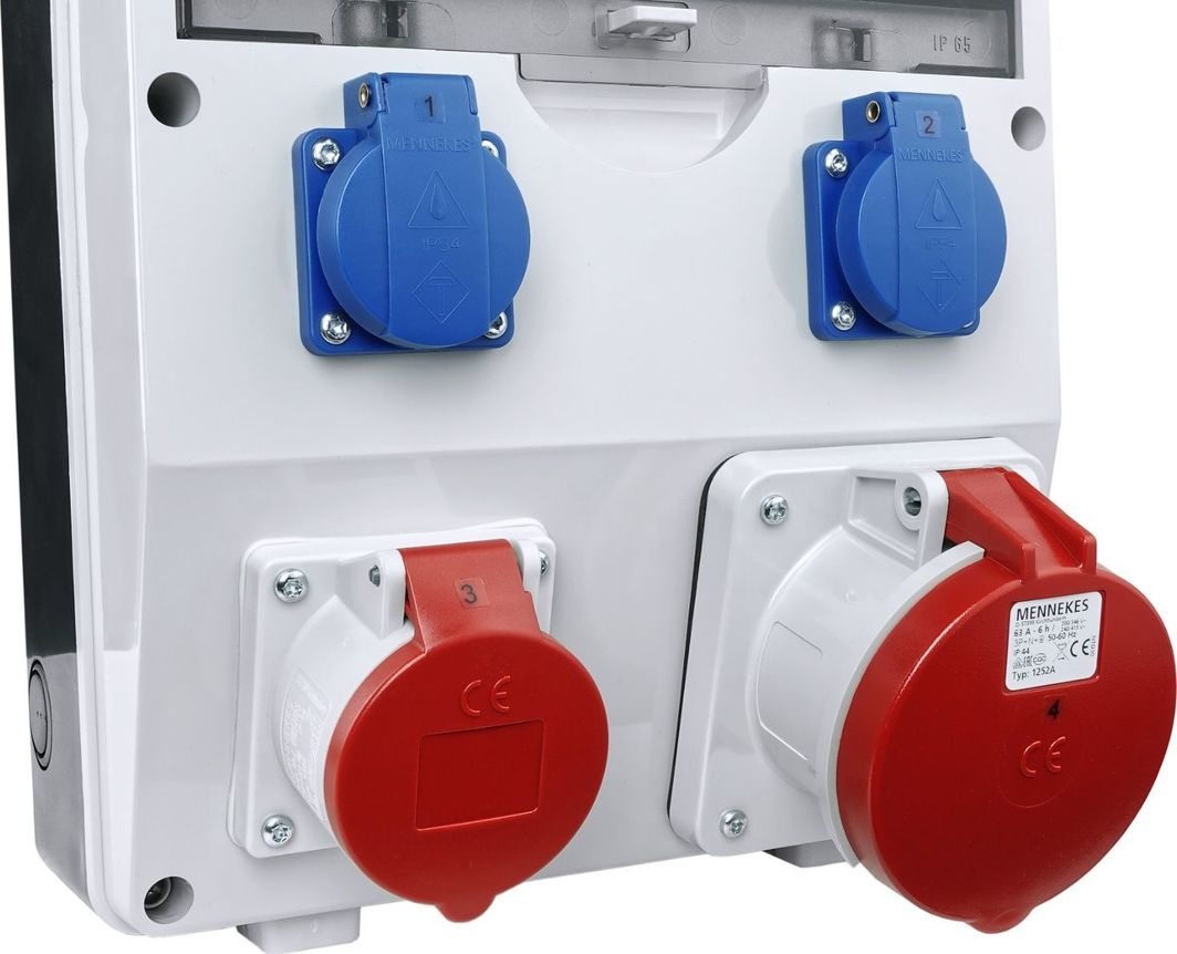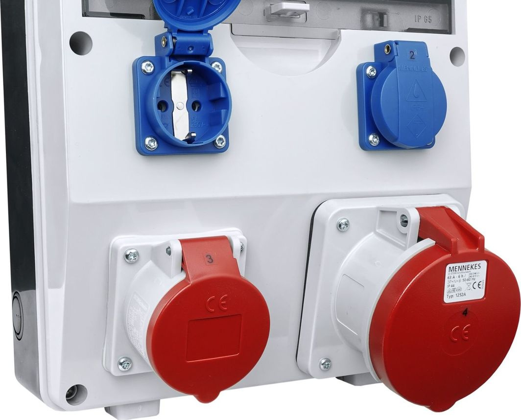 ✔️ 1x 63 A 400 V , 1x 16 A 400 V CEE-Steckdosen, Schutzklasse IP 44,