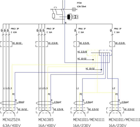 ✔️ Leitungschutzschalter für 1x C63 A 3P 10 kA, 1x C16 3P 10kA Steckdosen,