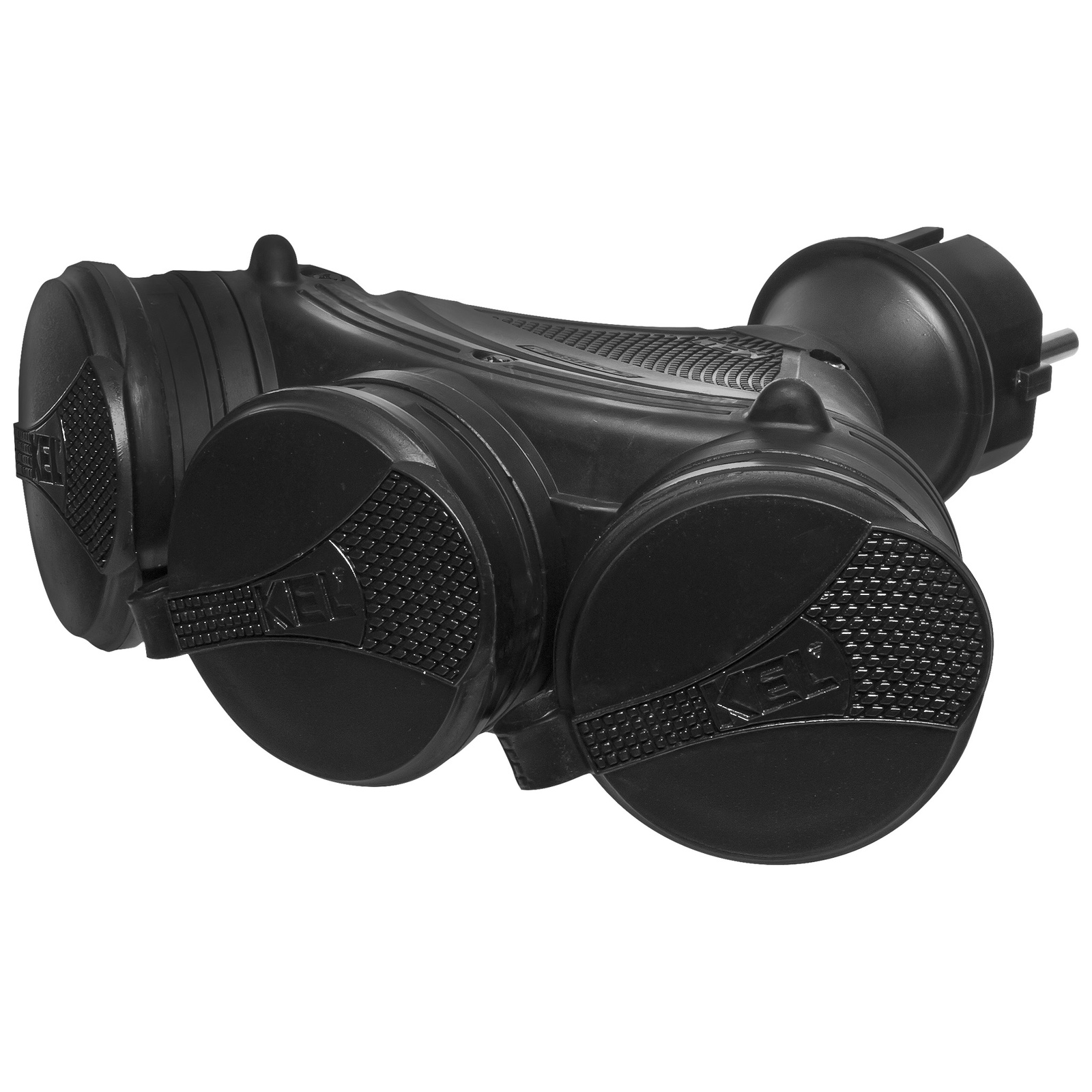 Tragbarer Verteiler Schwarz R-X3/44S IP44 3×2P+E 16A 250V Schuko W-01162