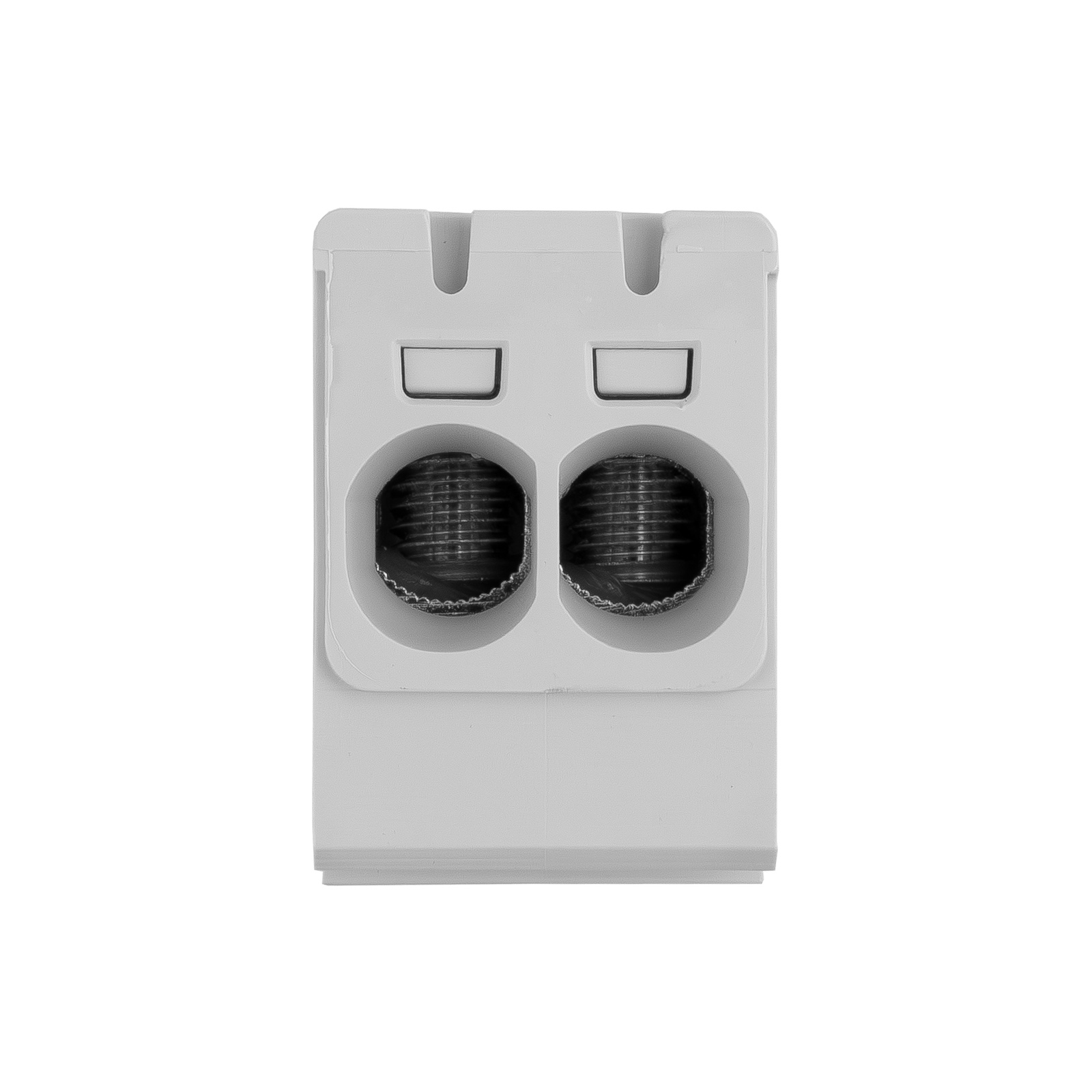 UK35/2 A Universalklemme mit vier Löchern für Al/Cu-Leiter 2,5-35mm2 in grau. Geeignet für die Montage auf DIN-Schiene TH-35.