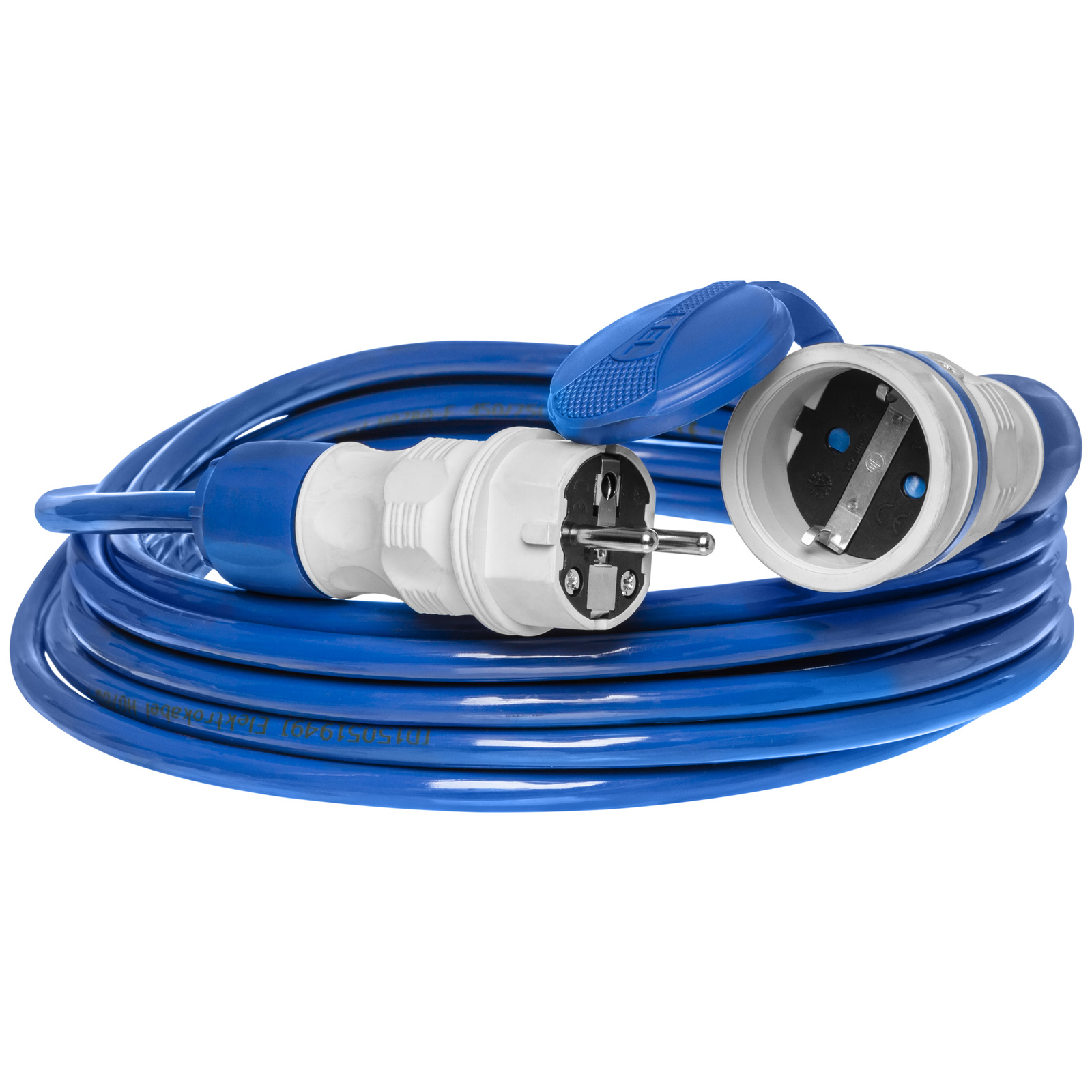 - Robustes Verlängerungskabel 250V in graublauer Farbe mit 5m Polyurethanleitung H07BQ-F und einem Querschnitt von 3×1,5 mm². Mit Stecker und Kupplung 2P+Z 16A – ideal für Werkstatt- und Außeneinsätze.