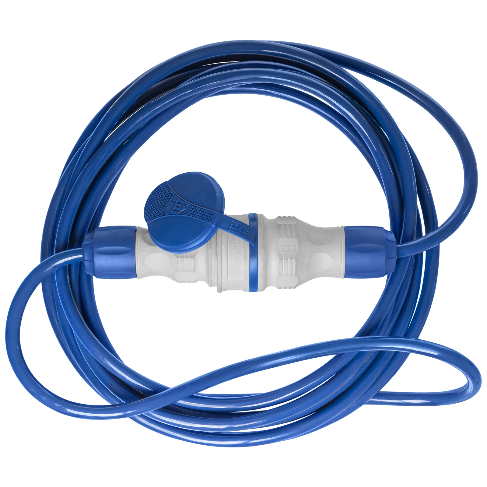 - Robustes Verlängerungskabel 250V in graublauer Farbe mit 5m Polyurethanleitung H07BQ-F und einem Querschnitt von 3×2,5 mm². Mit Stecker und Kupplung 2P+Z 16A – ideal für Werkstatt- und Außeneinsätze.