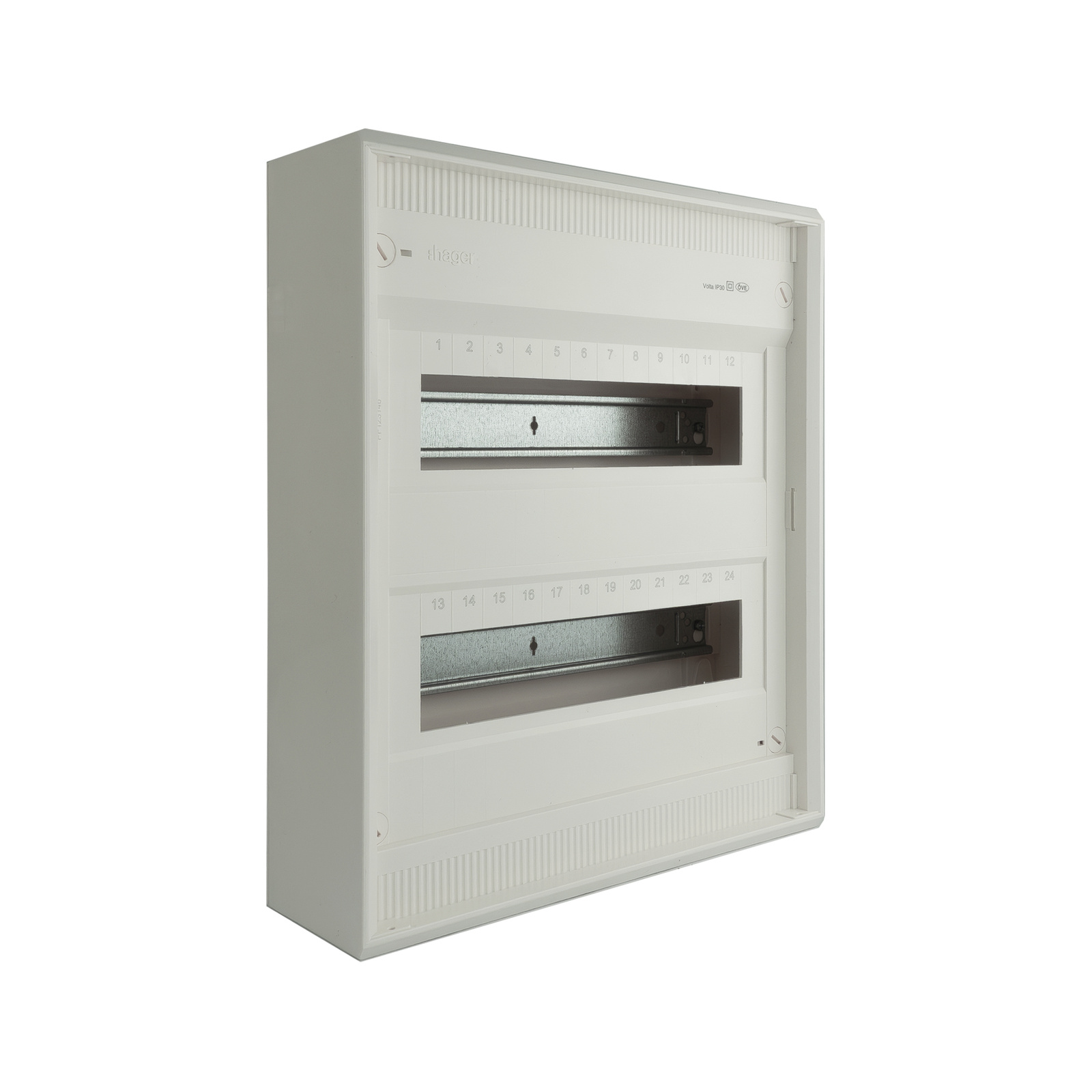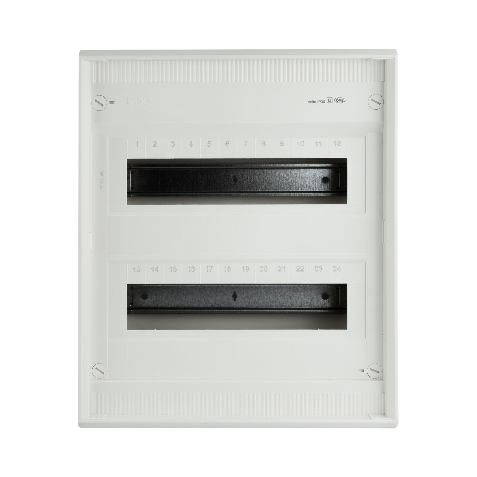 Verteilerschrank Aufputz Sicherunngskasten 2 Reihen 24 Module Verteilerkasten Kleinverteiler weiß Hager Volta 2x12 VA24BN