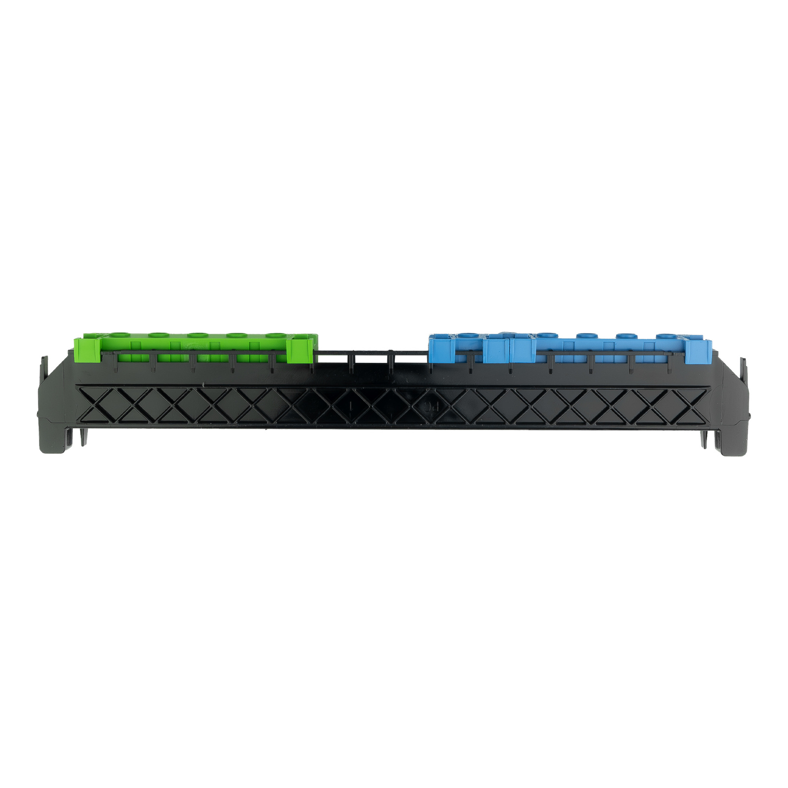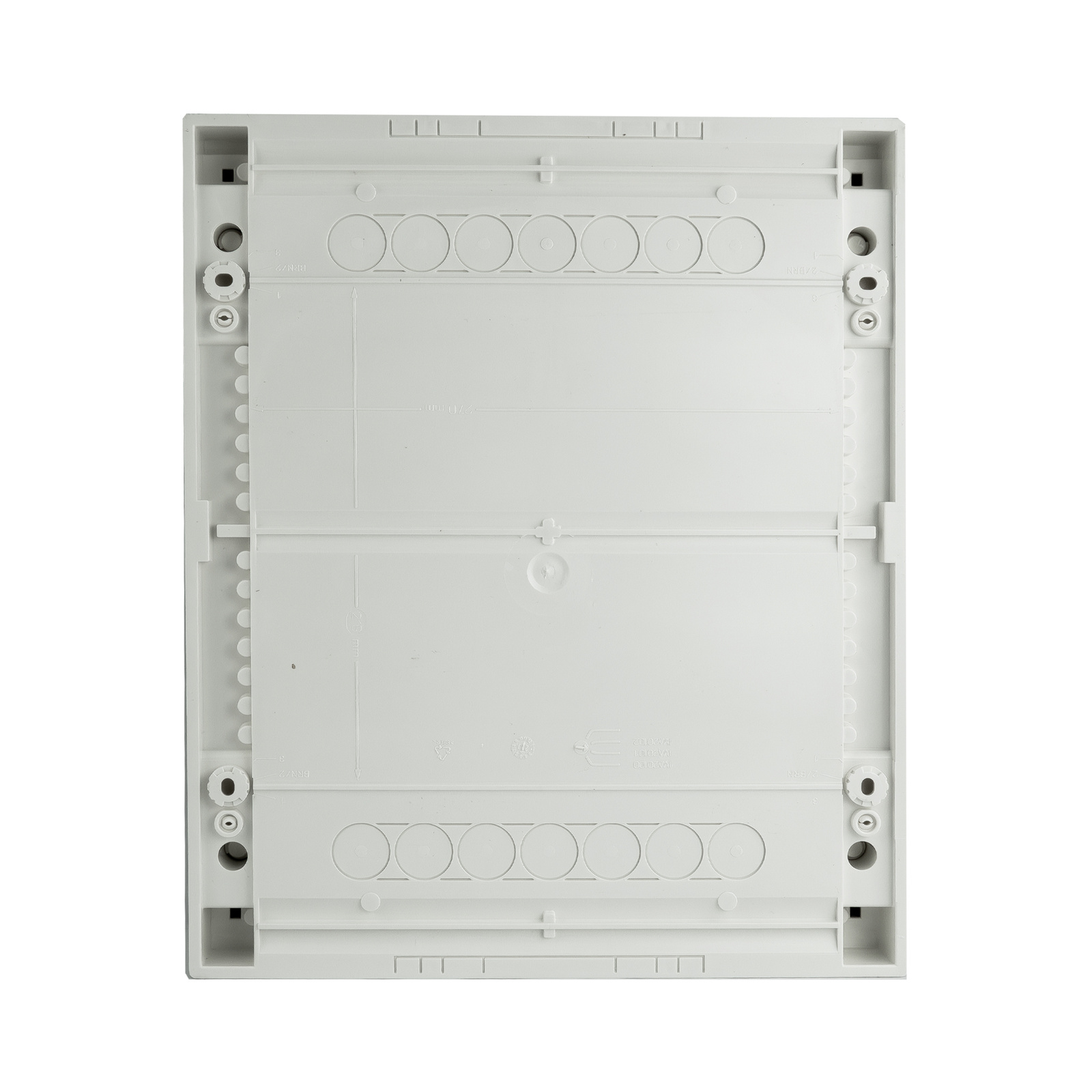 - 2-reihiges Verteilergehäuse. Verteilerschrank für den Innenbereich mit den Abmessungen 370 mm Höhe, 305 mm Breite und 96,50 mm Tiefe.