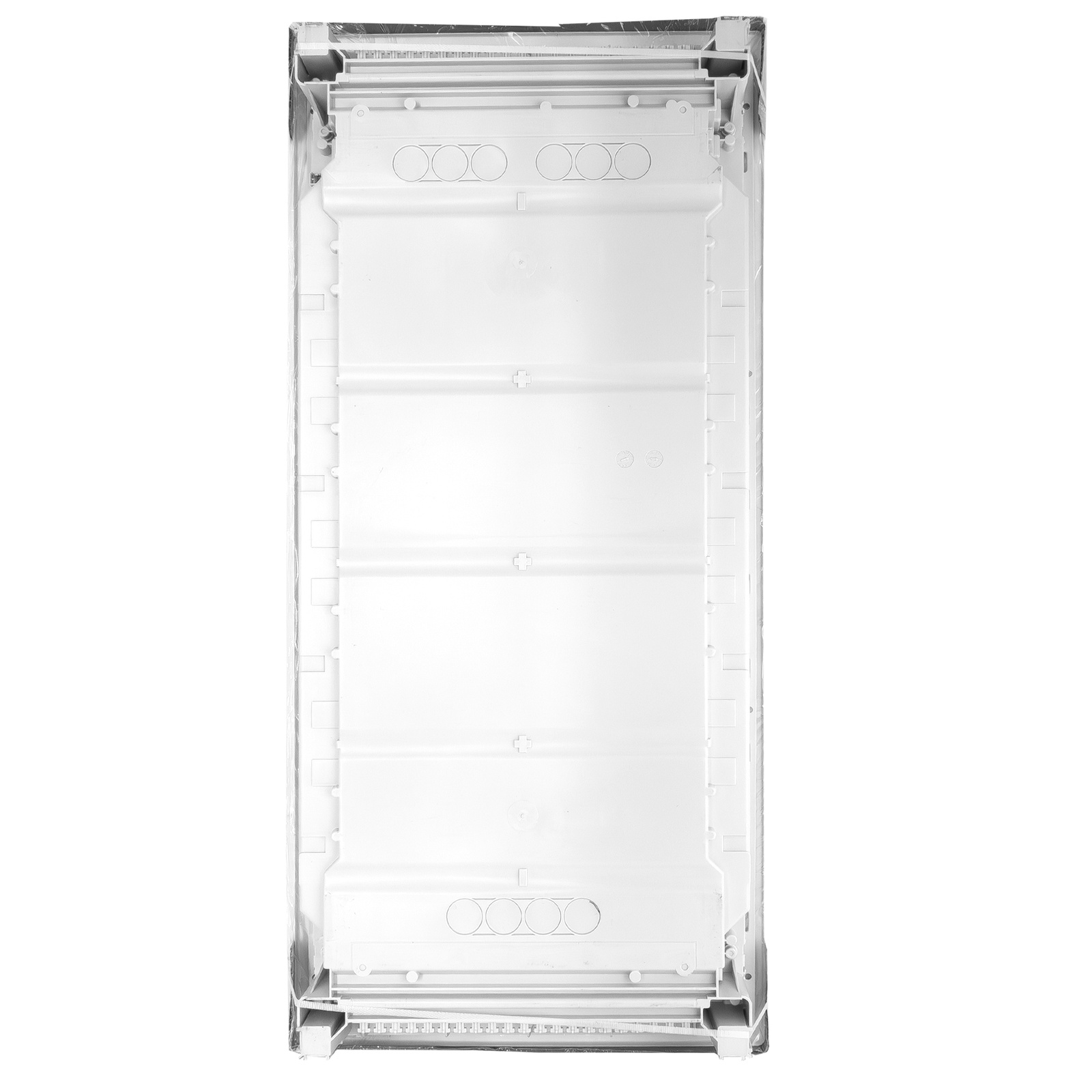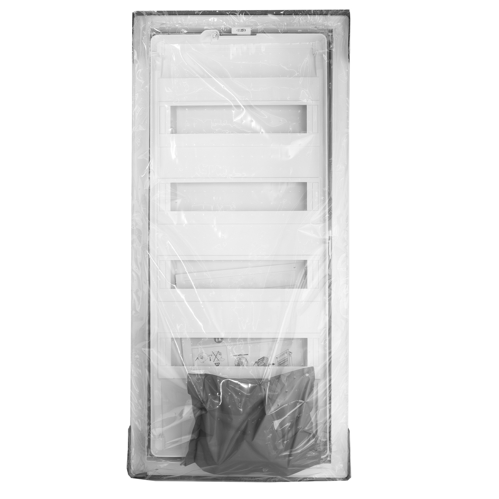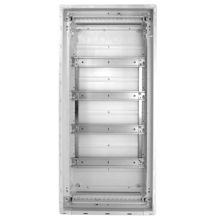 - 4-reihiges Verteilergehäuse mit 48 Modulen. Verteilerschrank für den Innenbereich mit den Abmessungen 755,50 mm Höhe, 348 mm Breite und 98 mm Tiefe.