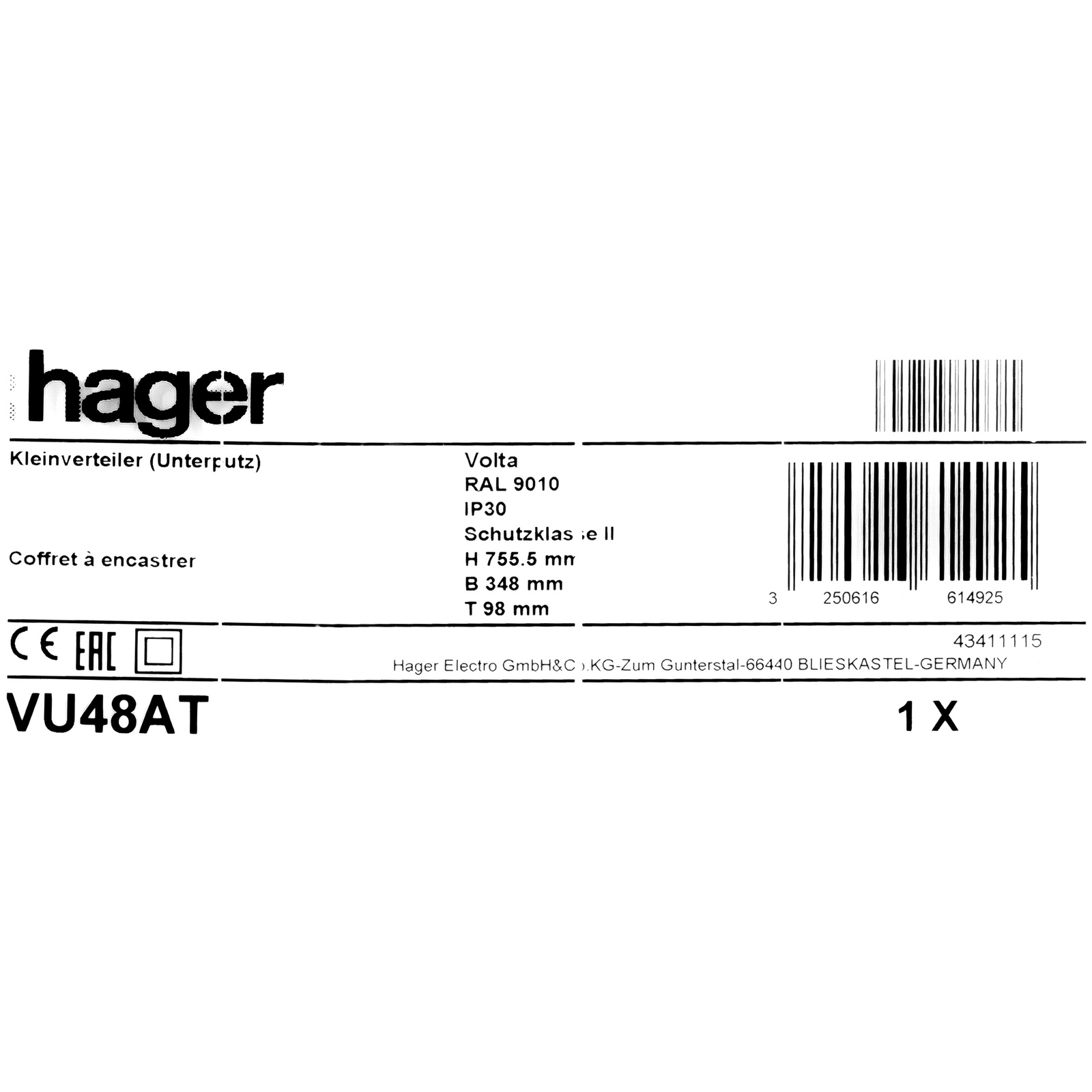 Verteilerschrank Unterputz Sicherunngskasten 4 Reihen 48 Modulen Verteilerkasten Kleinverteiler weiß Hager Volta 4x12 VU48AT